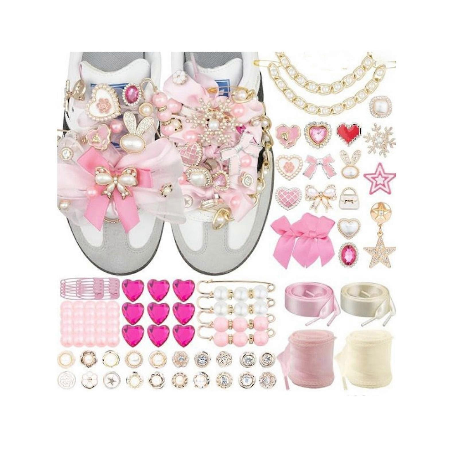 Women and Girls’ Sneakers Accessories Set With Decorative Jewelry Charms Brooches And Bowknot For DIY Fashion Projects Multicolor