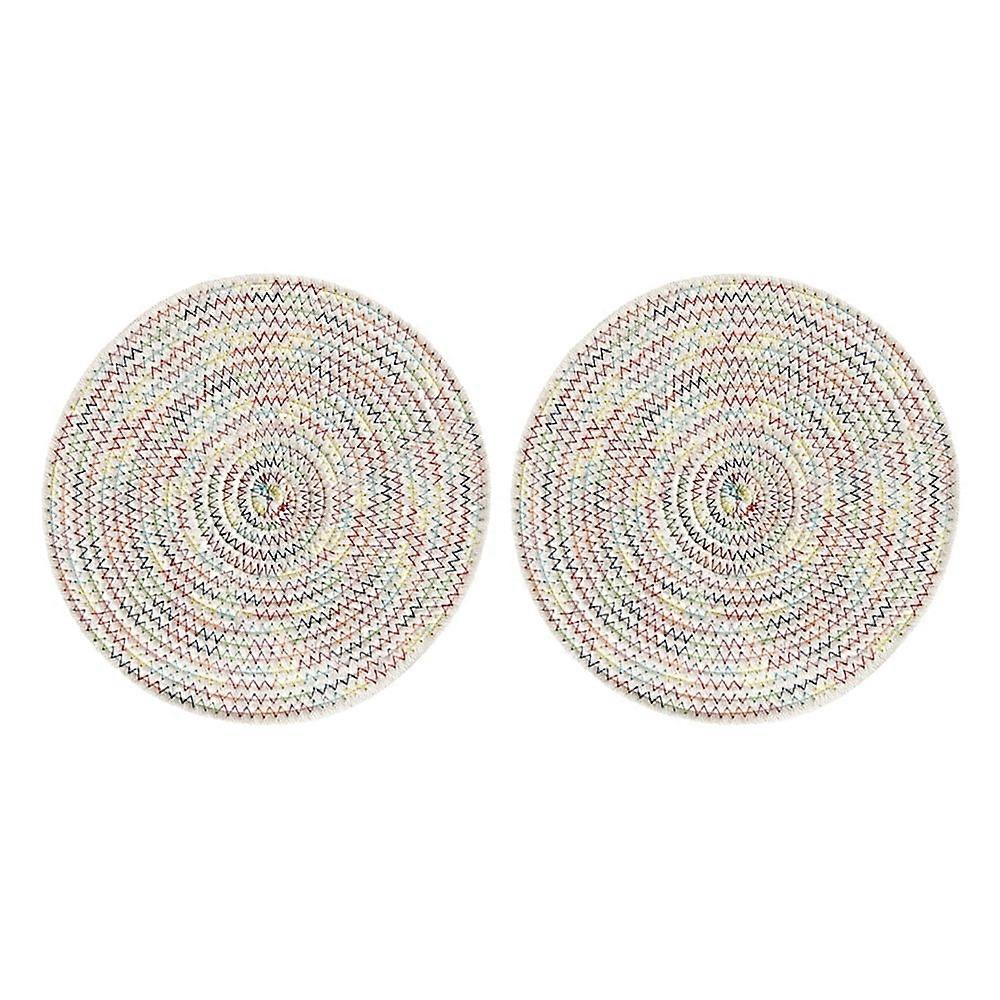 Round Woven Placemats, Natural Cotton Rope, Wood Decorative Mats for Dining Table, Heat Resistant Non-Slip, 11.8" dia (Set of 2)