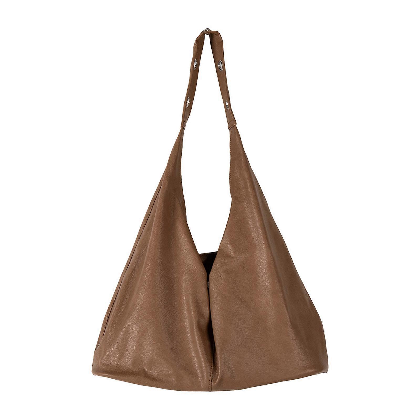 Women Casual Shoulder Bag Soft PU Leather Handbag Spacious Underarm Purse Practical Gift For Mother Birthday Holiday Khaki