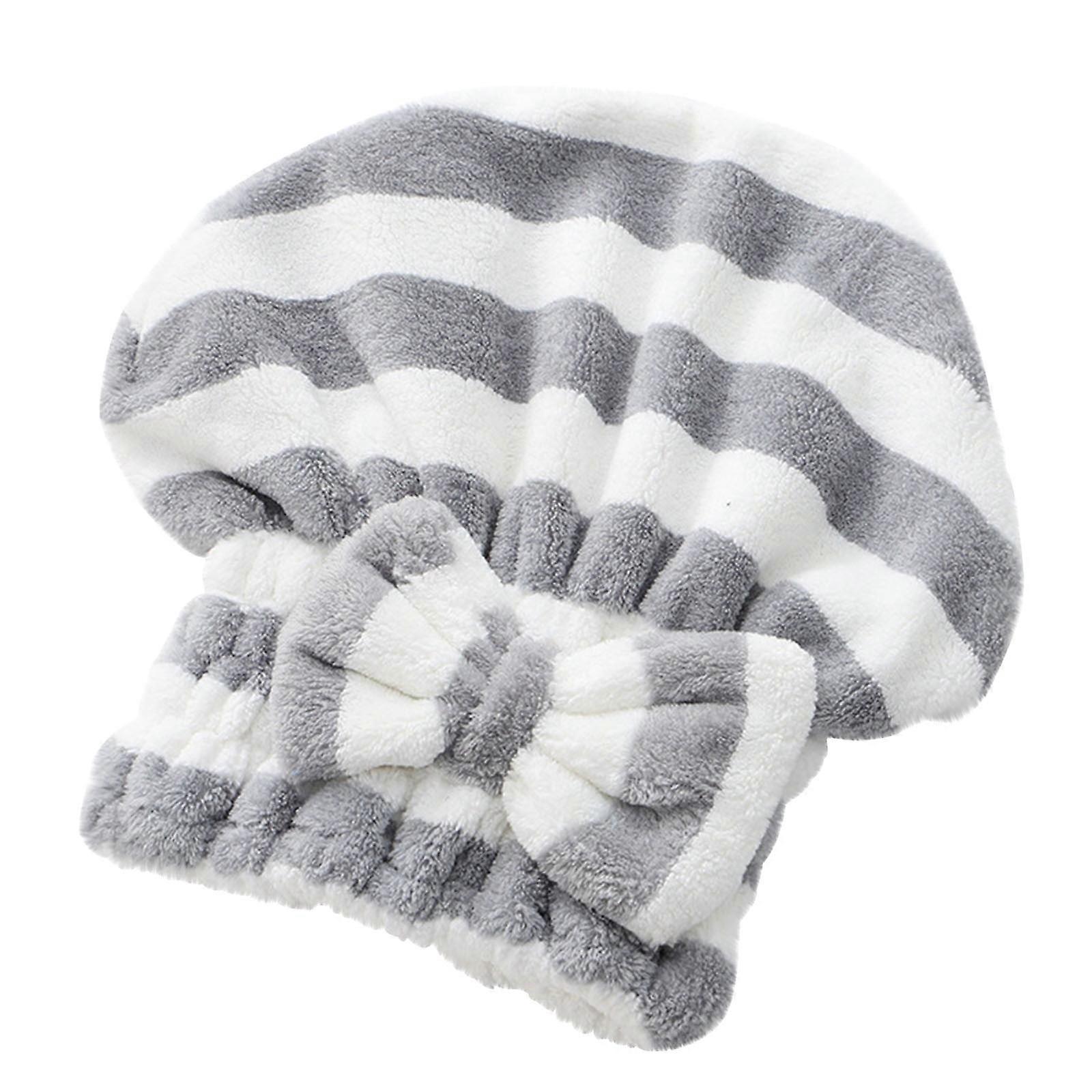 Zeceouar Coral Velvet Bow Tie Hair Dryer Cap, Microfiber Quick Drying Towel, Striped Princess Shower Cap, Compatible with Home Deals