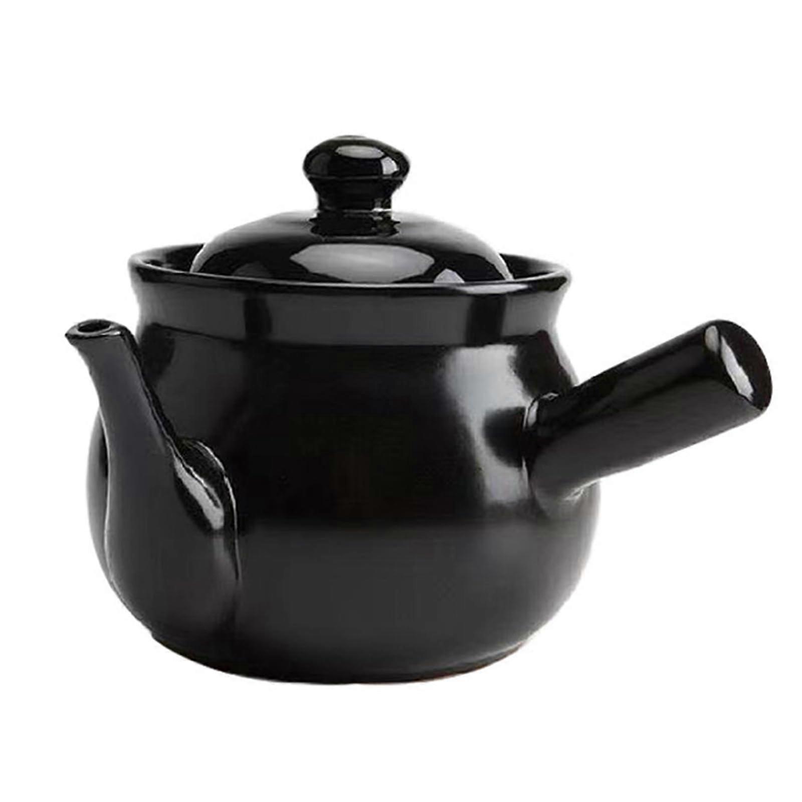 Ceramic Casserole Pot with Lid for Chinese Herbal Soup Stew, 3L Black Porcelain Cookware