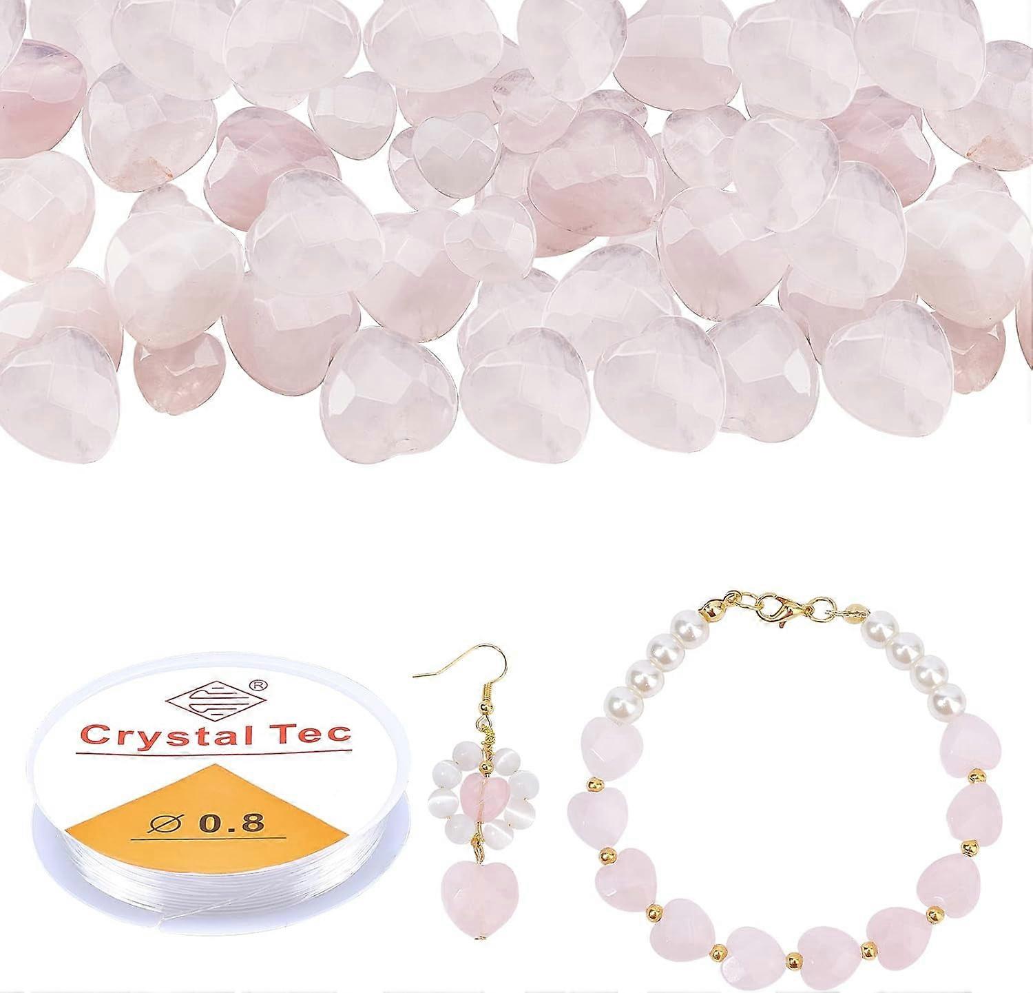 34 Pcs Natural Quartz Heart Beads, Faceted Gemstone Beads with Elastic Thread for Jewelry Making, Necklace, DIY Gift