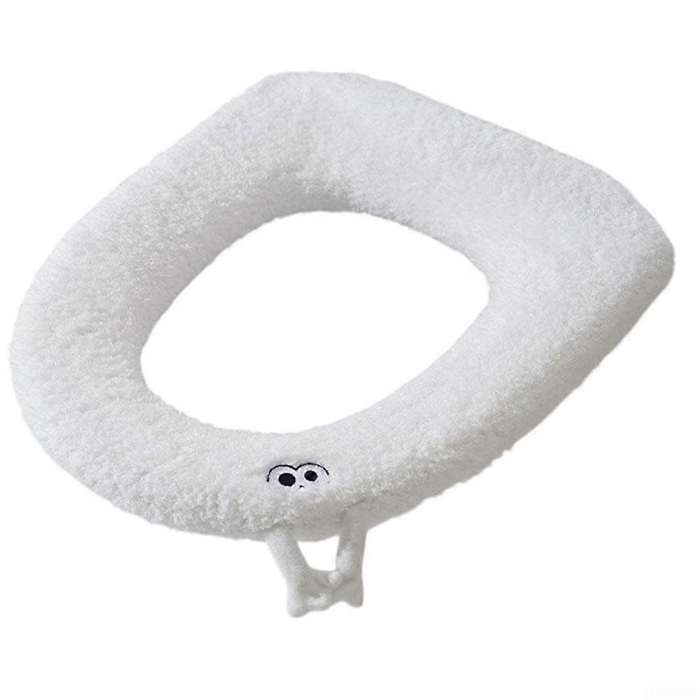 Winter Plush Toilet Seat Cover with Handle, Washable Velvet Fabric for Warm Comfort (White)
