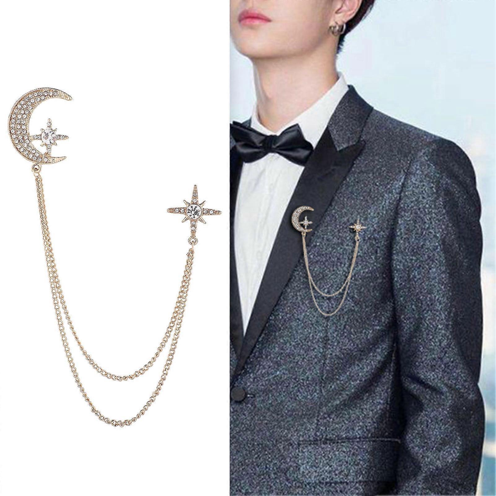 Vintage Bow Tie/Moon Star/Rhinestone Sweater Collar Brooch Pin for Men Women, Compatible with Business Suit Lapel, Shawl, Blouse, Cardigan