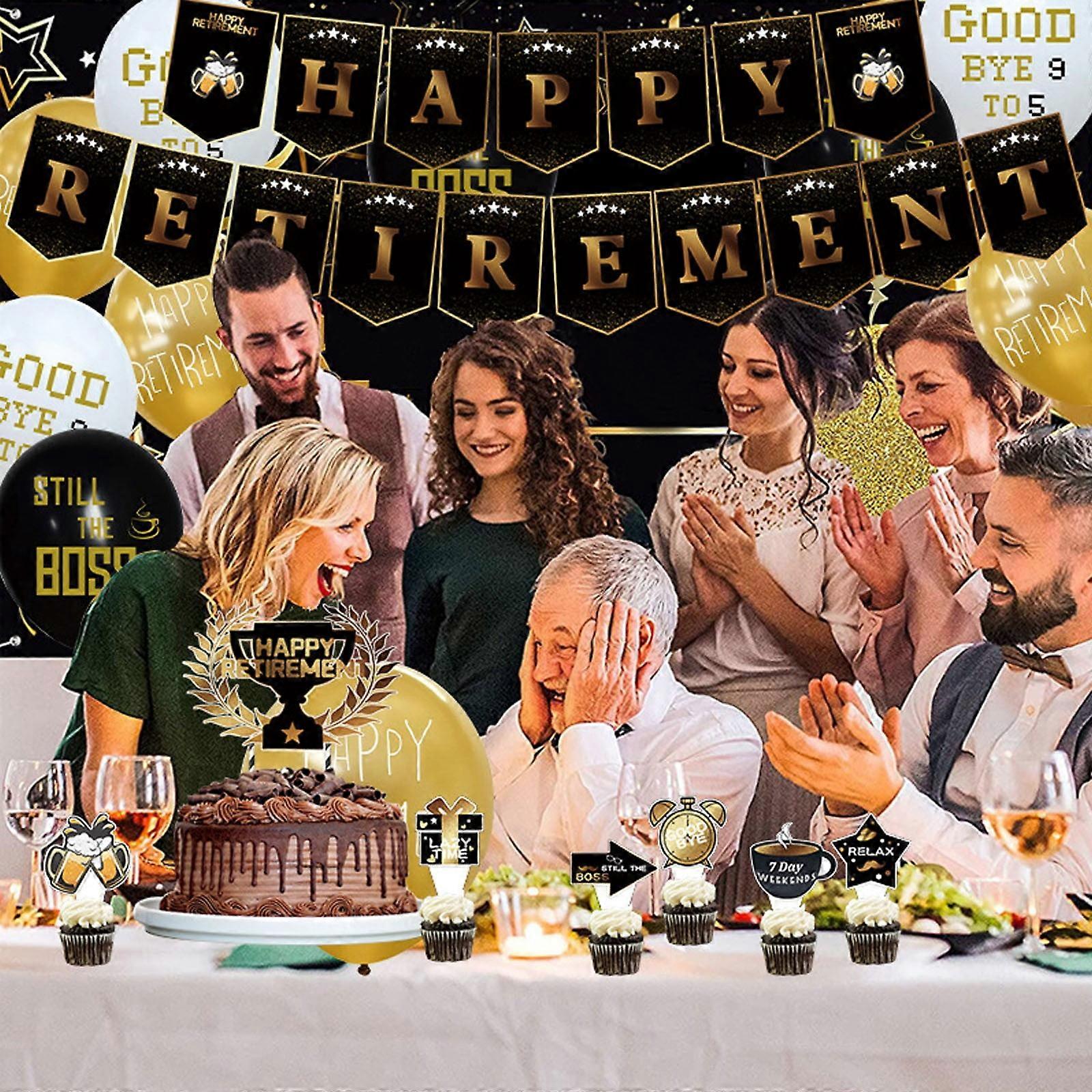 WinysinHappy Retirement Party Decorations - 33 Pcs Set with Banner, Balloons, Cupcake Topper, compatible with retirement events, gifts, favors