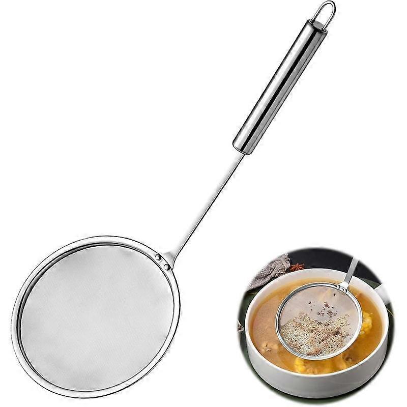 Stainless Steel Skimmer Spoon 4"Multi-Functional Fine Mesh Hot Pot Strainer with 9.4" Heat-Resistant Handle For Frying, Soup, Quinoa, Miso
