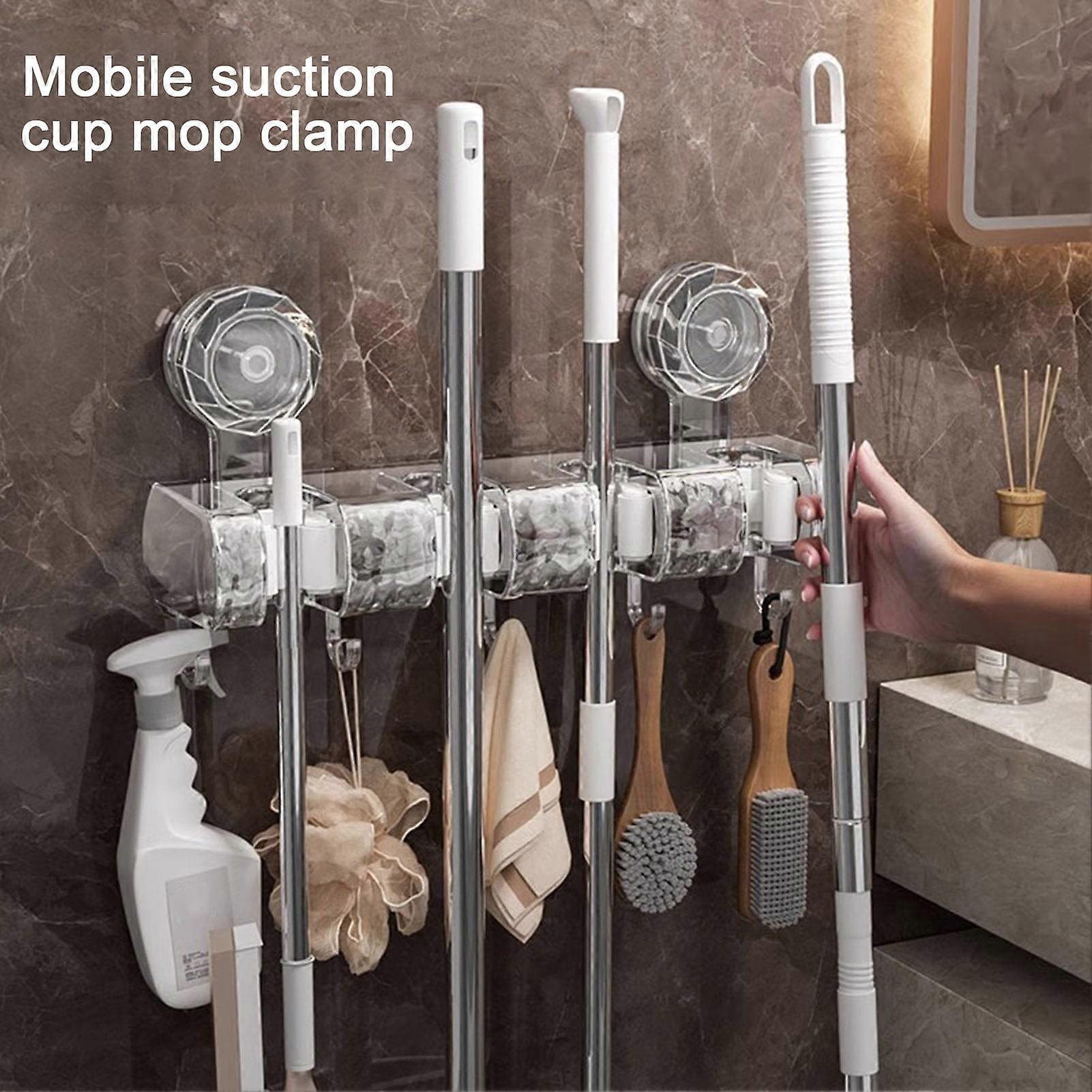 Wall Mount Mop Gripper Broom Holder, Compatible with SUSUchens, Strong Load-Bearing, Anti-Slip, Easy Install, Dustpan Organizer, Clear Grey