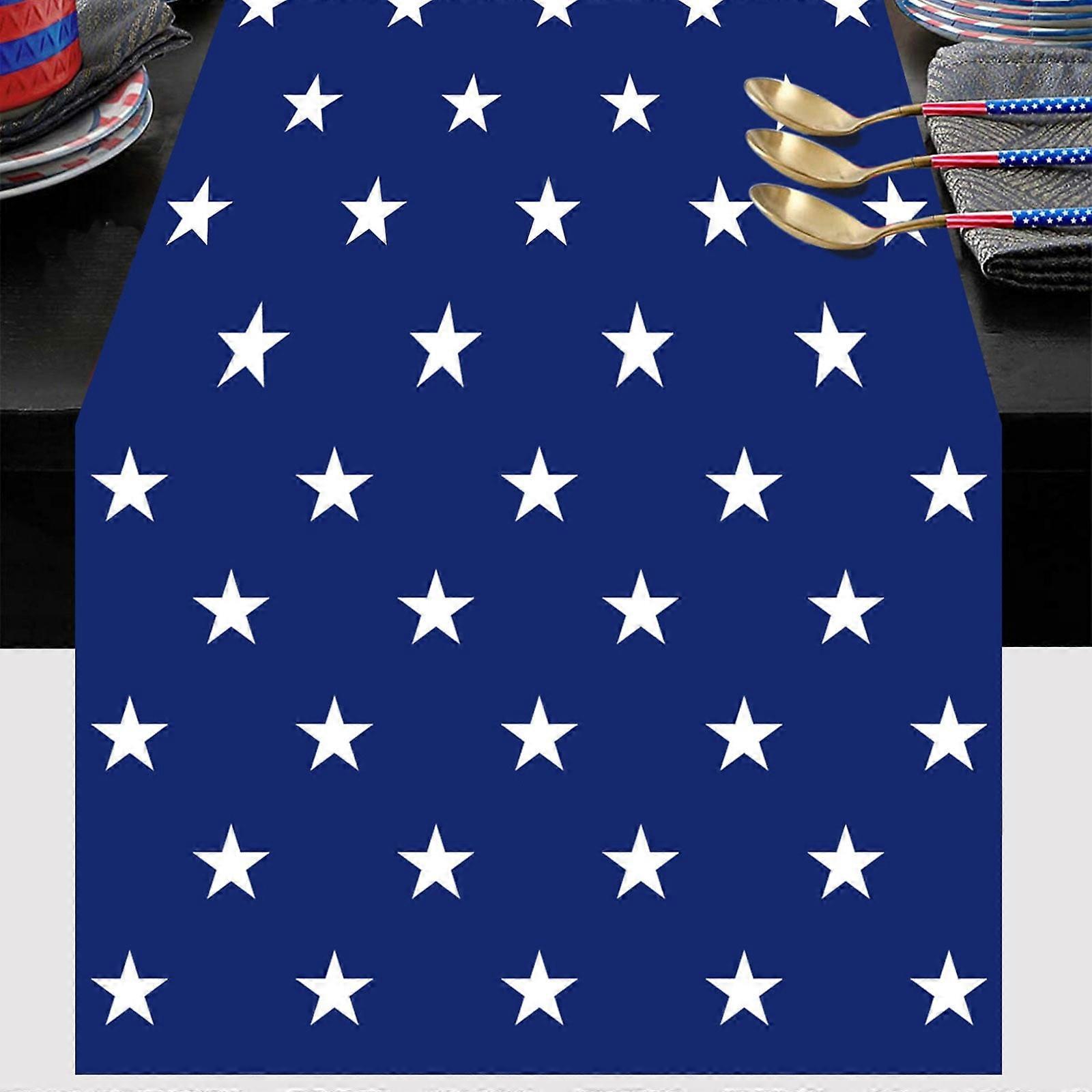 Giyblacko 4th of July Table Runner - 4 Styles, Patriotic Stripes, Wired Edge, Satin Flag Ribbon for Holiday Decoration