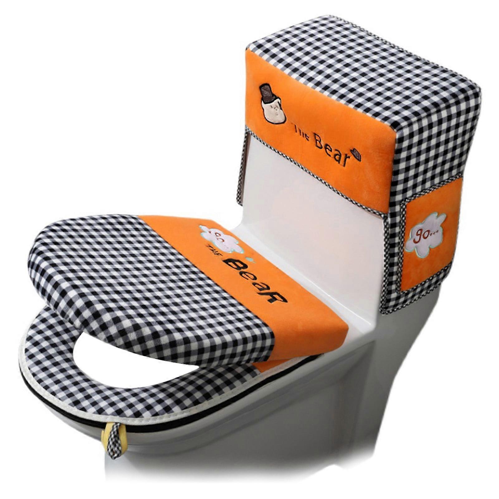 Cozy Waterproof Toilet Seat Mat Set: Plaid Print Detachable Toilet Cover Cloth with Handle