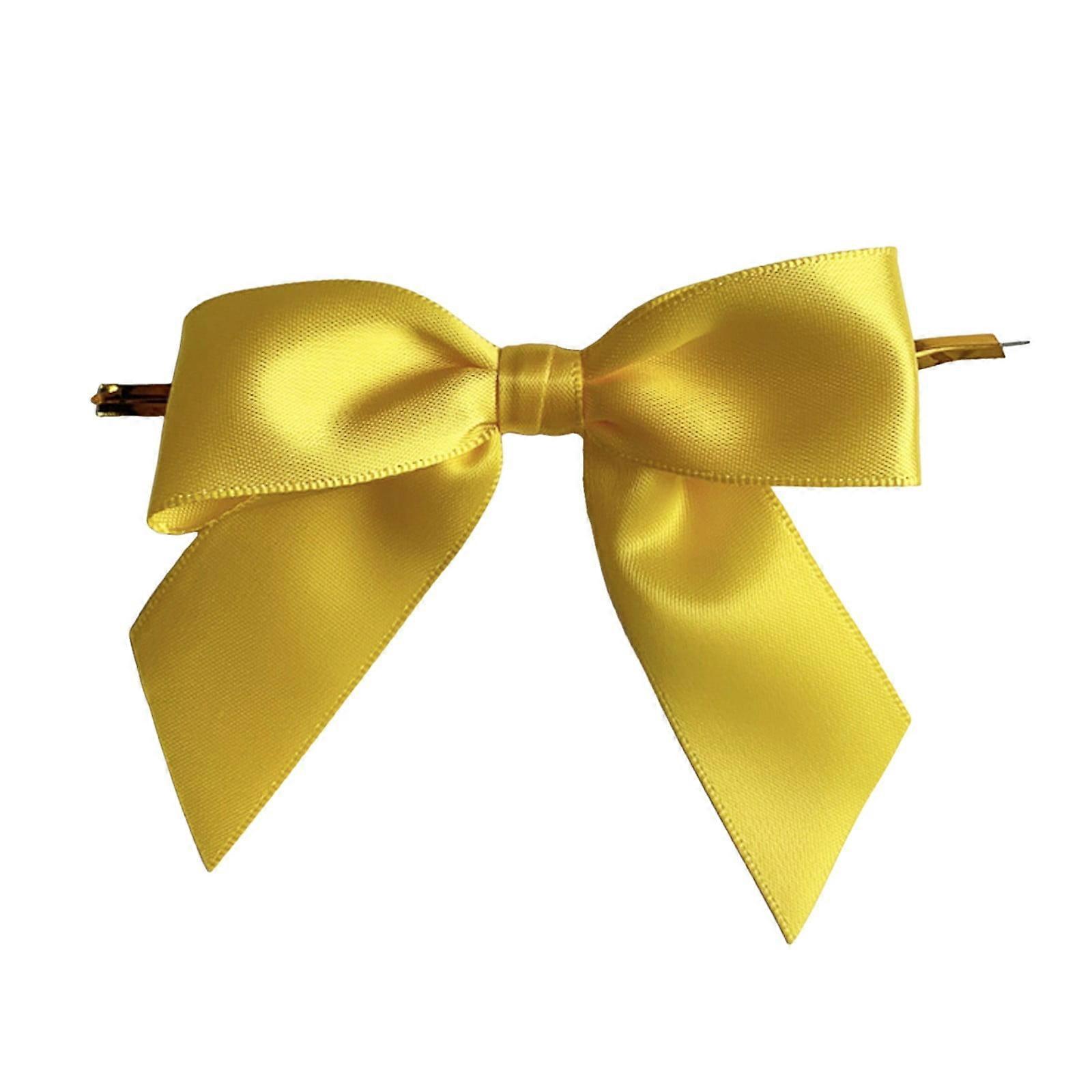 Bentne Twist Tie Bows, 50-Pack Satin Ribbon Bows 3.4" for Gift Wrapping, Treat Bags, Wedding, Birthday, Baby Shower (Yellow)