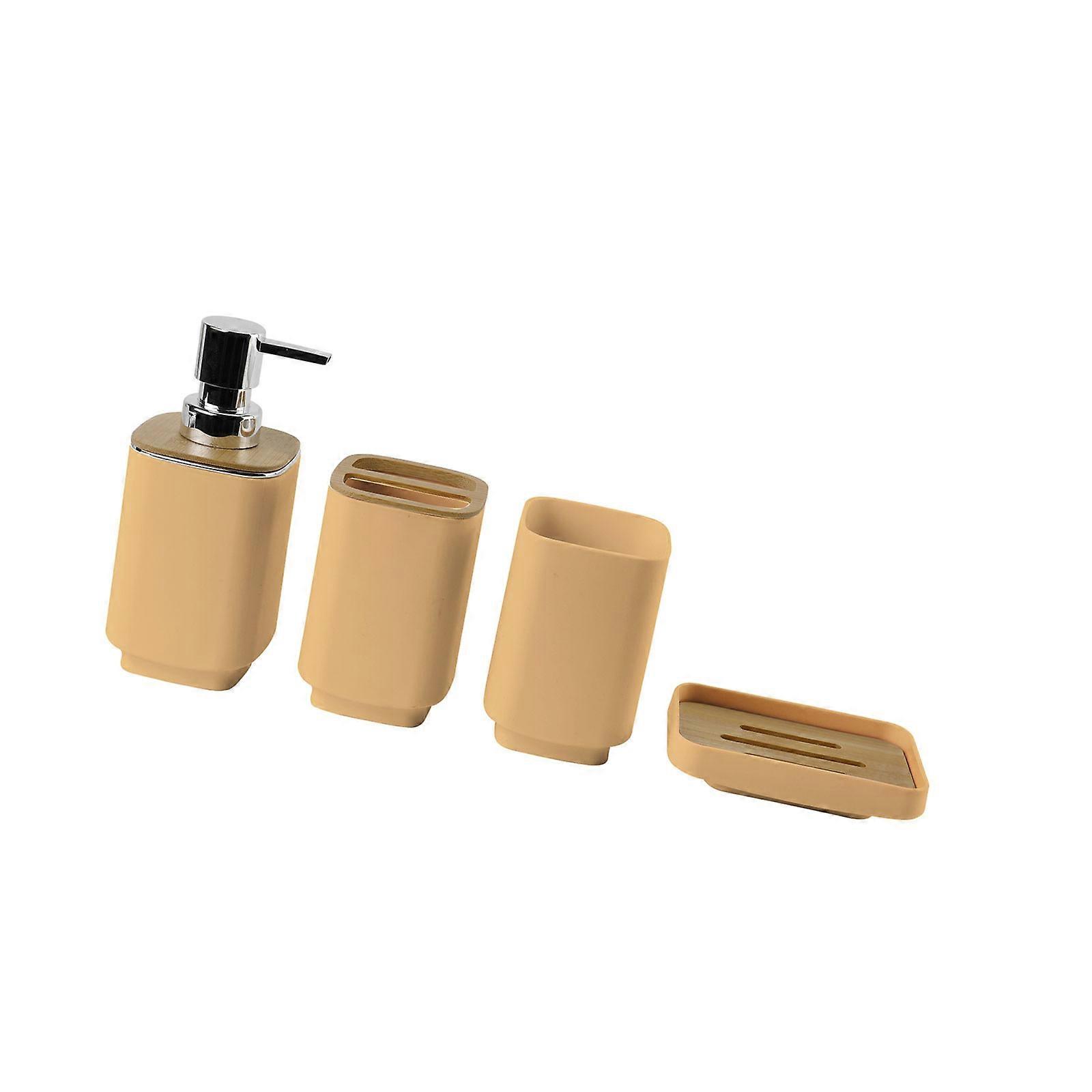 4 Pieces Bathroom Organizers Set Square Bamboos Toothbrush Cup Soap Tray With Base Space Saving Designs Yellow