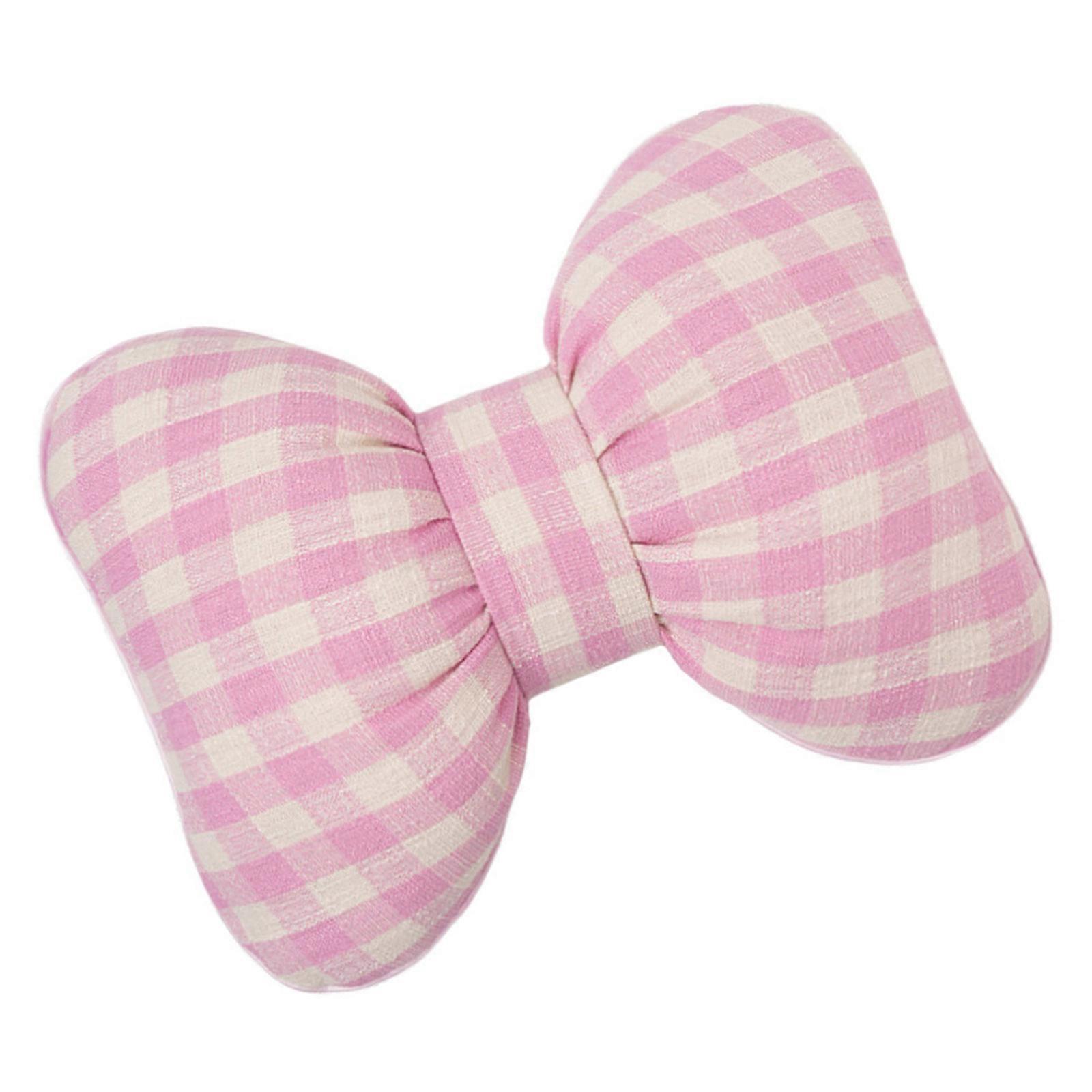 Breathable Car Seat Headrest Lumbar Support Pillow Plaids Pattern Bowknot Design Comfortable Driving Auto Accessories Pink