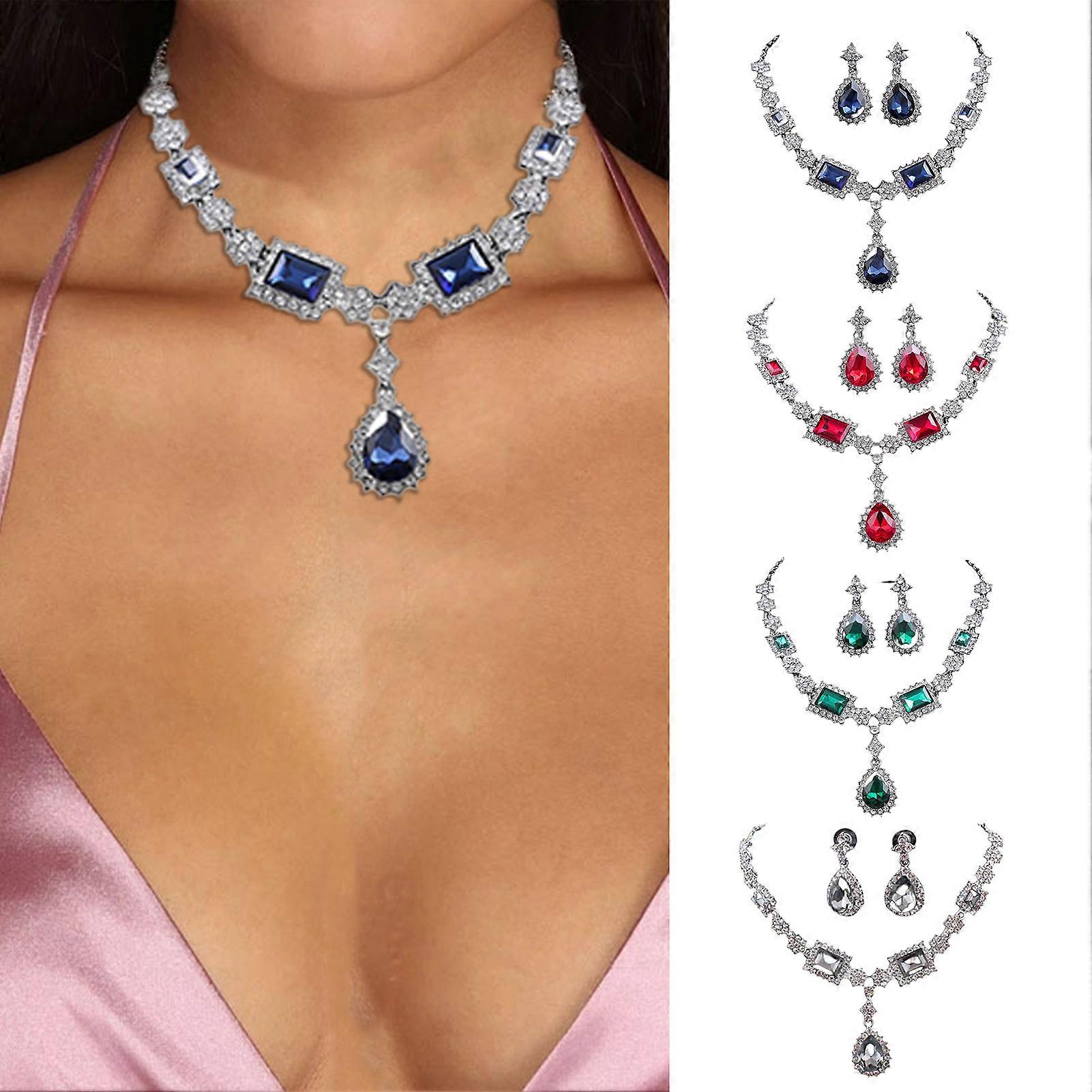 Hesroicy 2Pcs/Set Faux Crystal Geometric Necklace & Earrings Set, Rhinestones Drop Jewelry for Wedding Bridal, Anniversary Gift