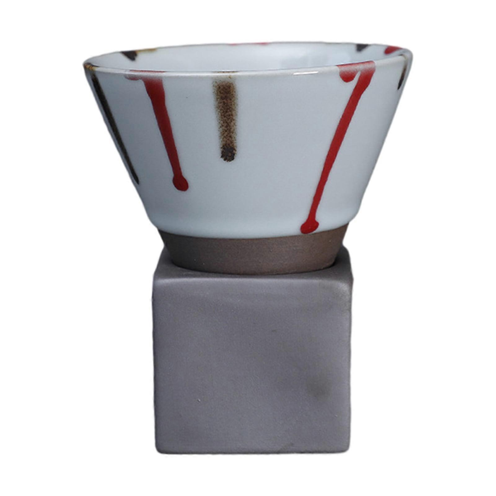 200ML Crude Pottery Coffee Cup with Funnel & Base - Heat-resistant Handmade Japanese Style Tapered Mug for Latte, Cappuccino, Tea, Espresso - Ideal