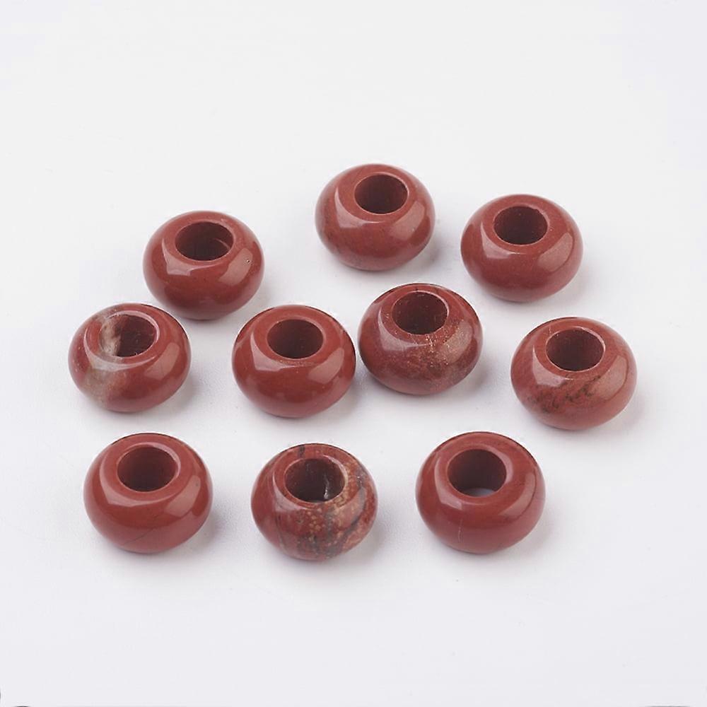 2pc Natural Red Jasper European Beads Large Hole Beads Rondelle 14x7~8mm Hole: 6mm