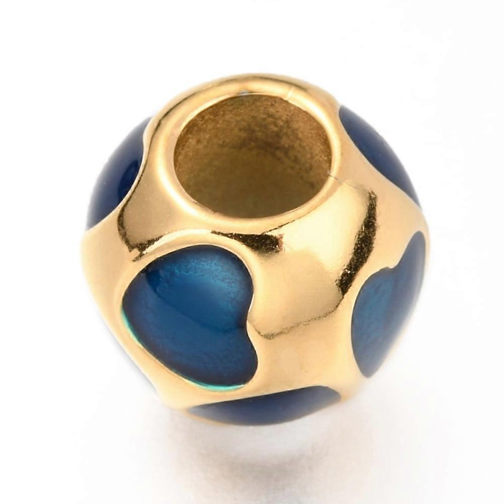 1pc Ion Plating(IP) 304 Stainless Steel European Beads with Enamel Large Hole Beads Round with Heart Golden Blue 10.5mm Hole: 4.5mm