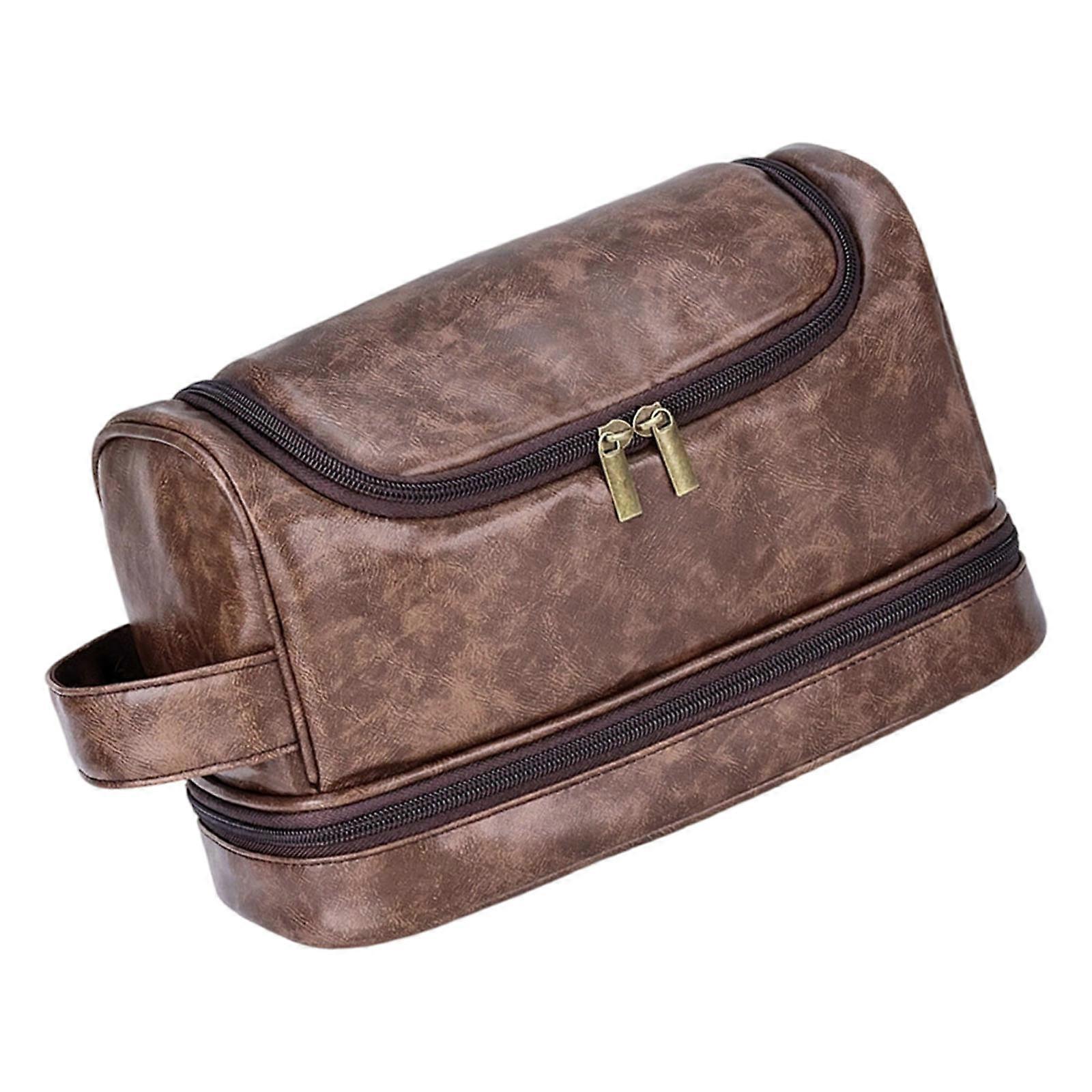 PU Men's Hanging Cosmetic Bag Compartments Waterproof Travel Organizers For Toiletries Business Gym Accessory Brown 1