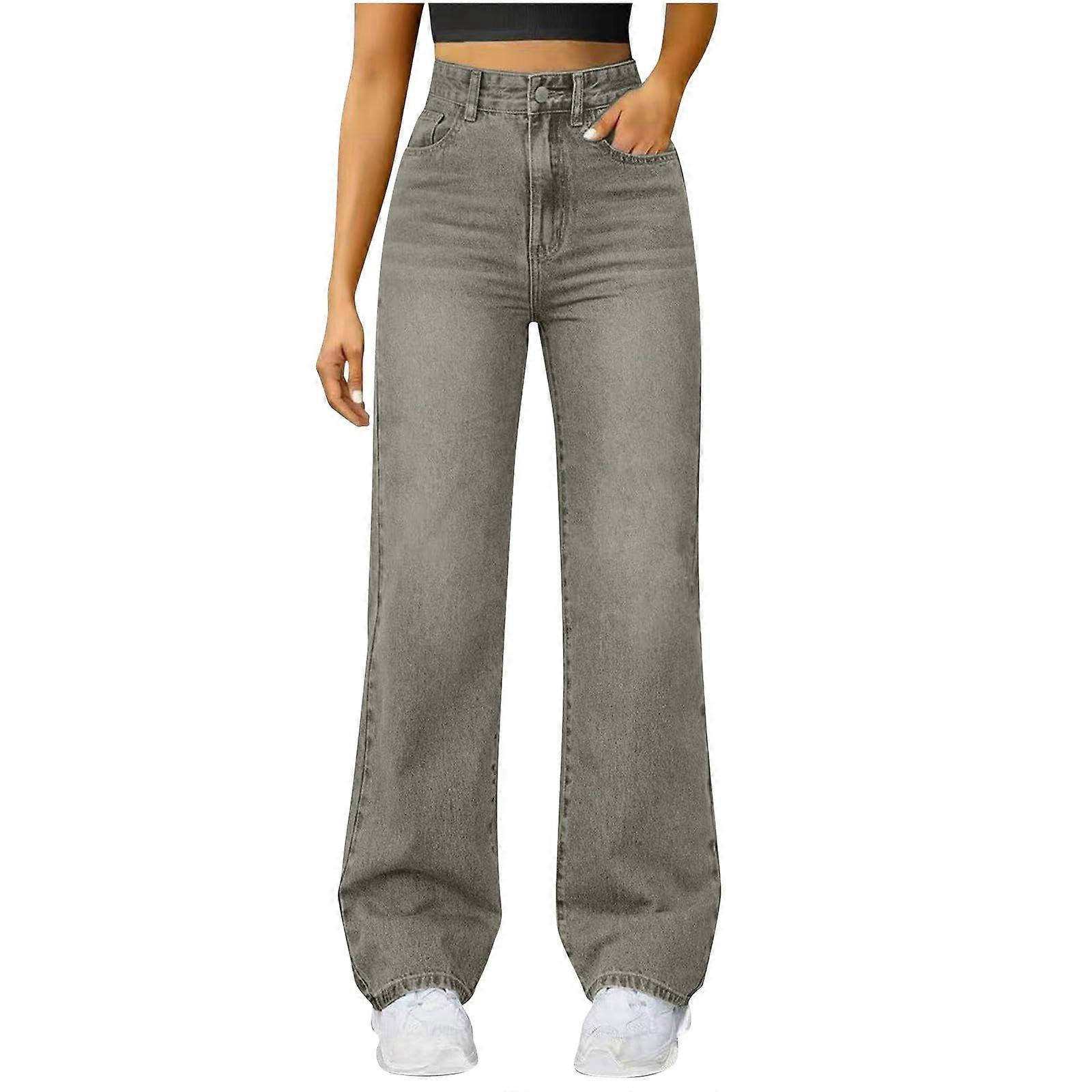 Jeans for Women High Waist Straight Wide Leg Jean Loose Stretchy Baggy Casual Pants with Pocket space gray XL