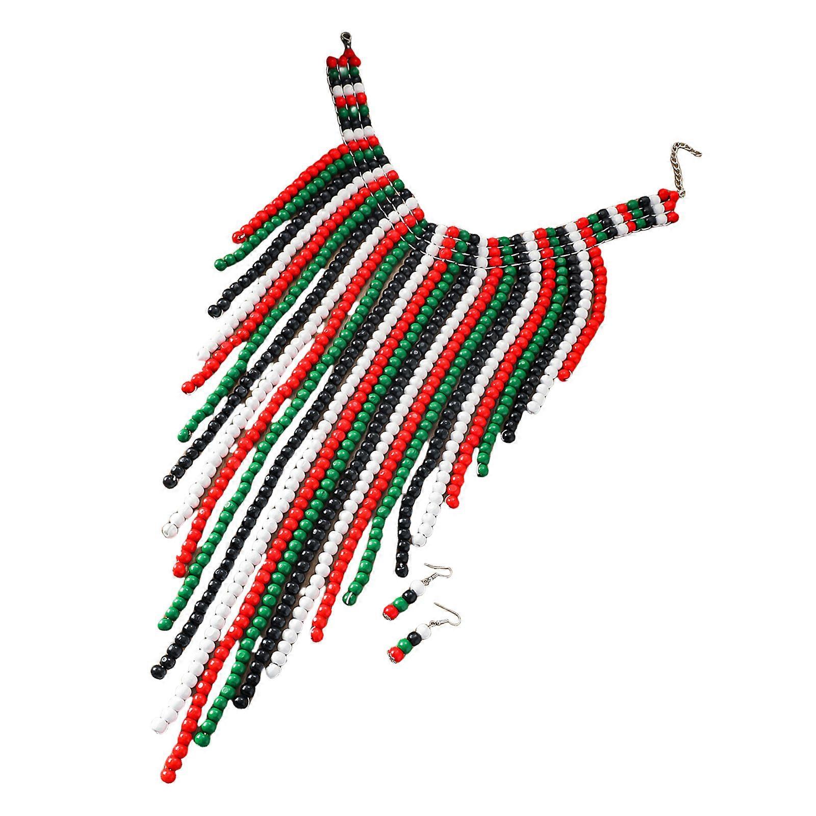 Handmade Beaded Necklace and Earrings Set Tassels Style Jewelry Handmade Jewelry Women Bohemian Fashion Pendant Earrings Multicolor
