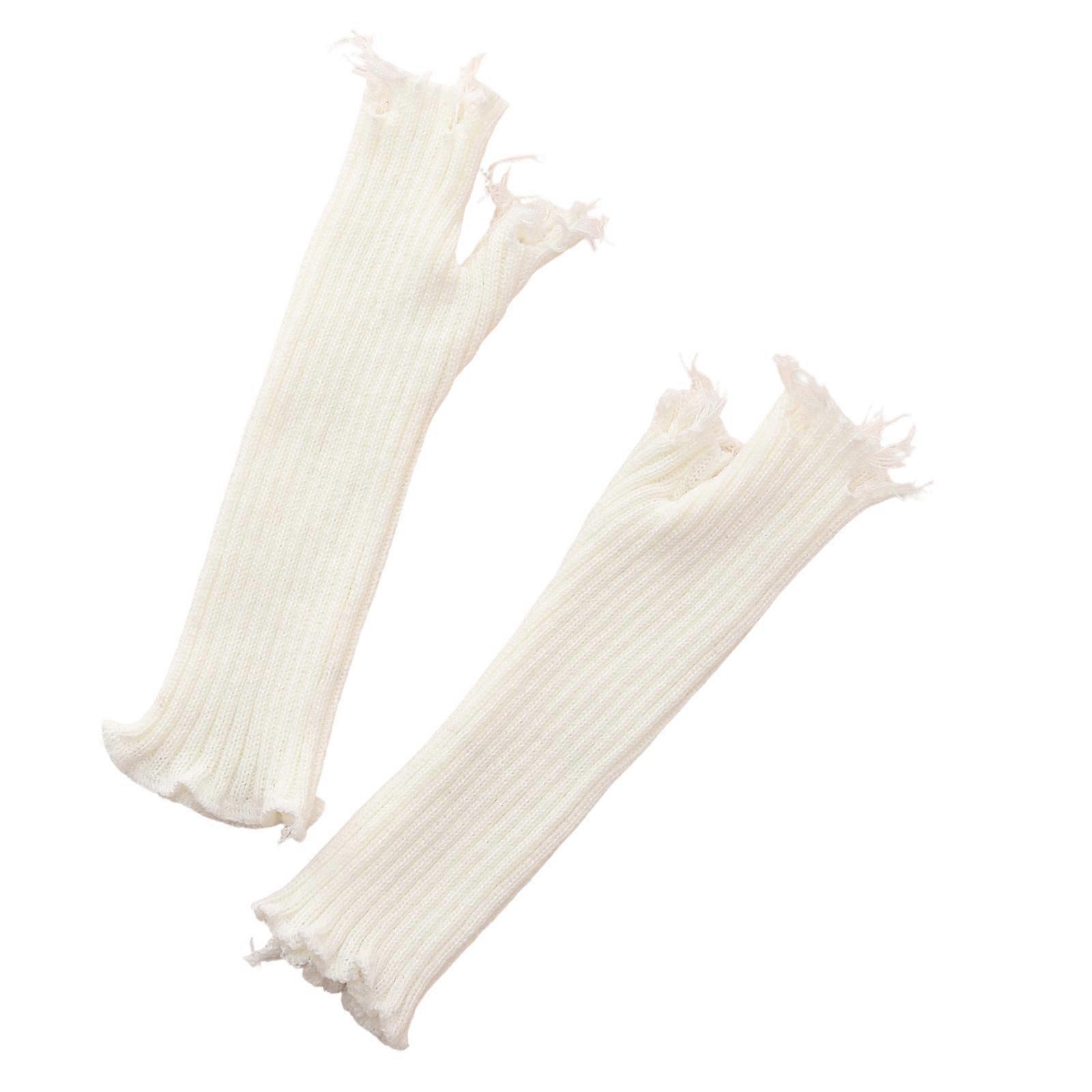 Ripped Design Knitted Gloves Stretchy Fingerless Gloves for Adult Teens All Season Handwear For Youth Skating Streetwear White