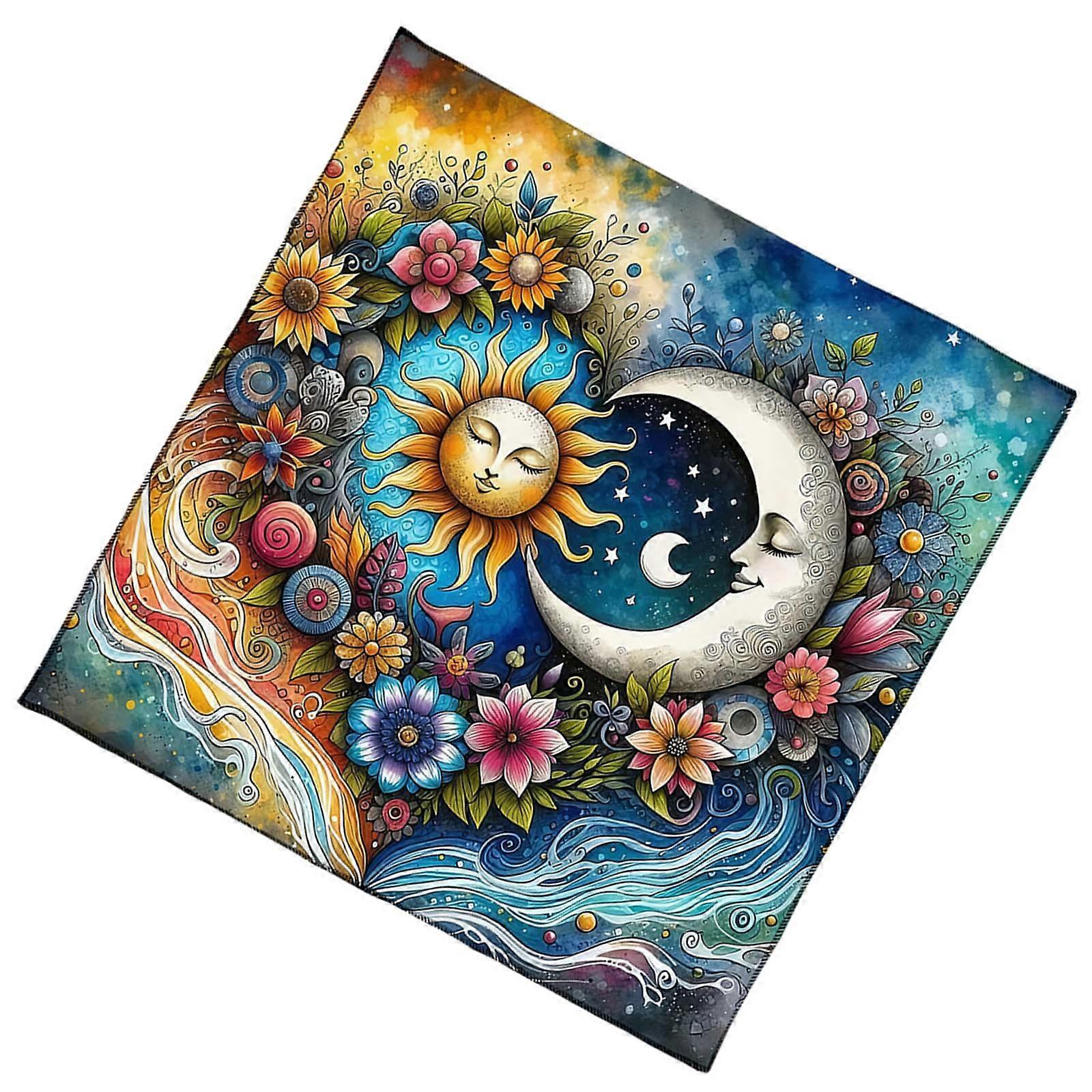 Fashionable Tarots Cover Foldable Meditations Mat Velvets Texture Sun and Moon Gaming Mat Suitable for Home Gatherings 75x75cm