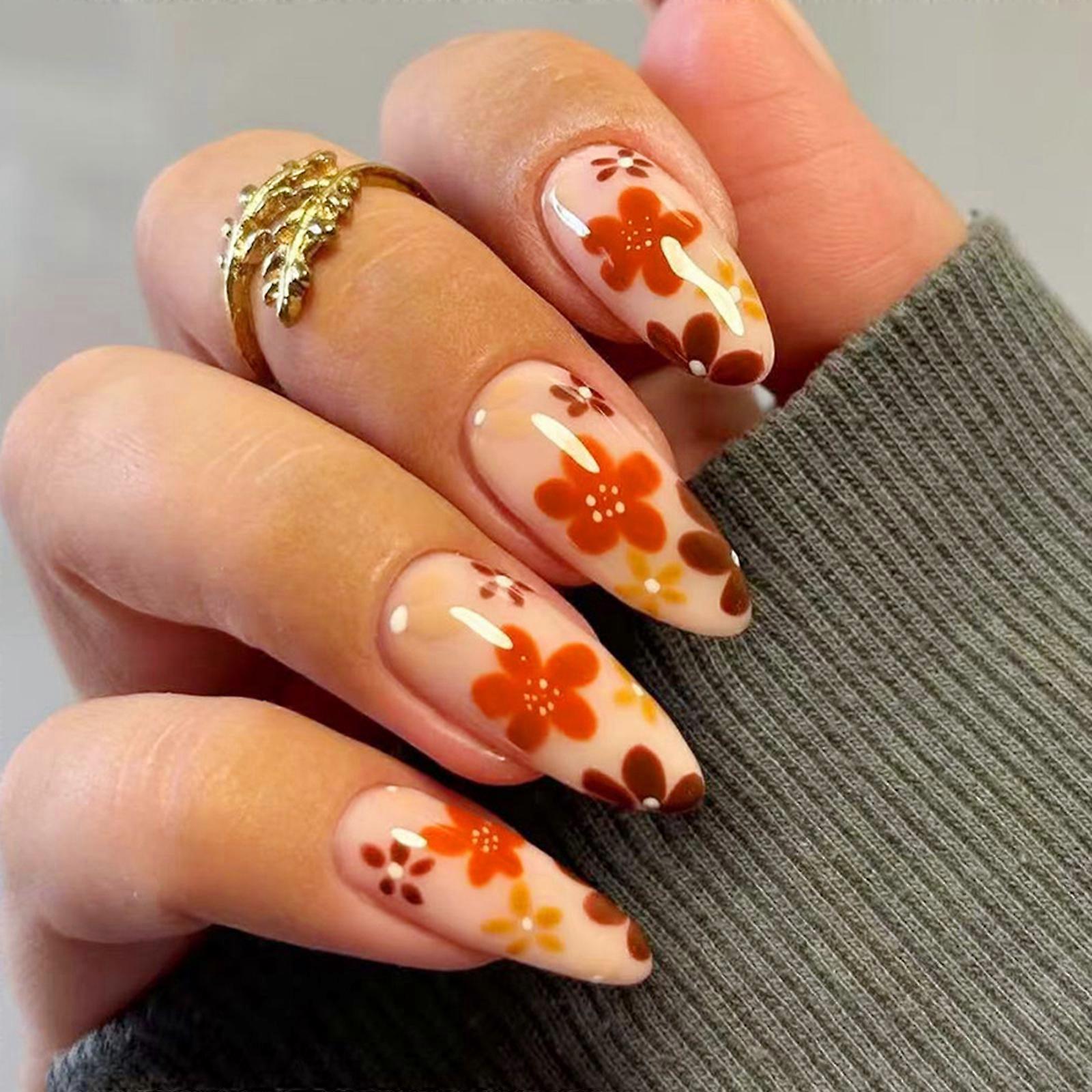 Fall Winter Fake Nails Plastic Floral Design Press On Nails NonToxic Easy Application Nail Art For Party Office Event Multicolor