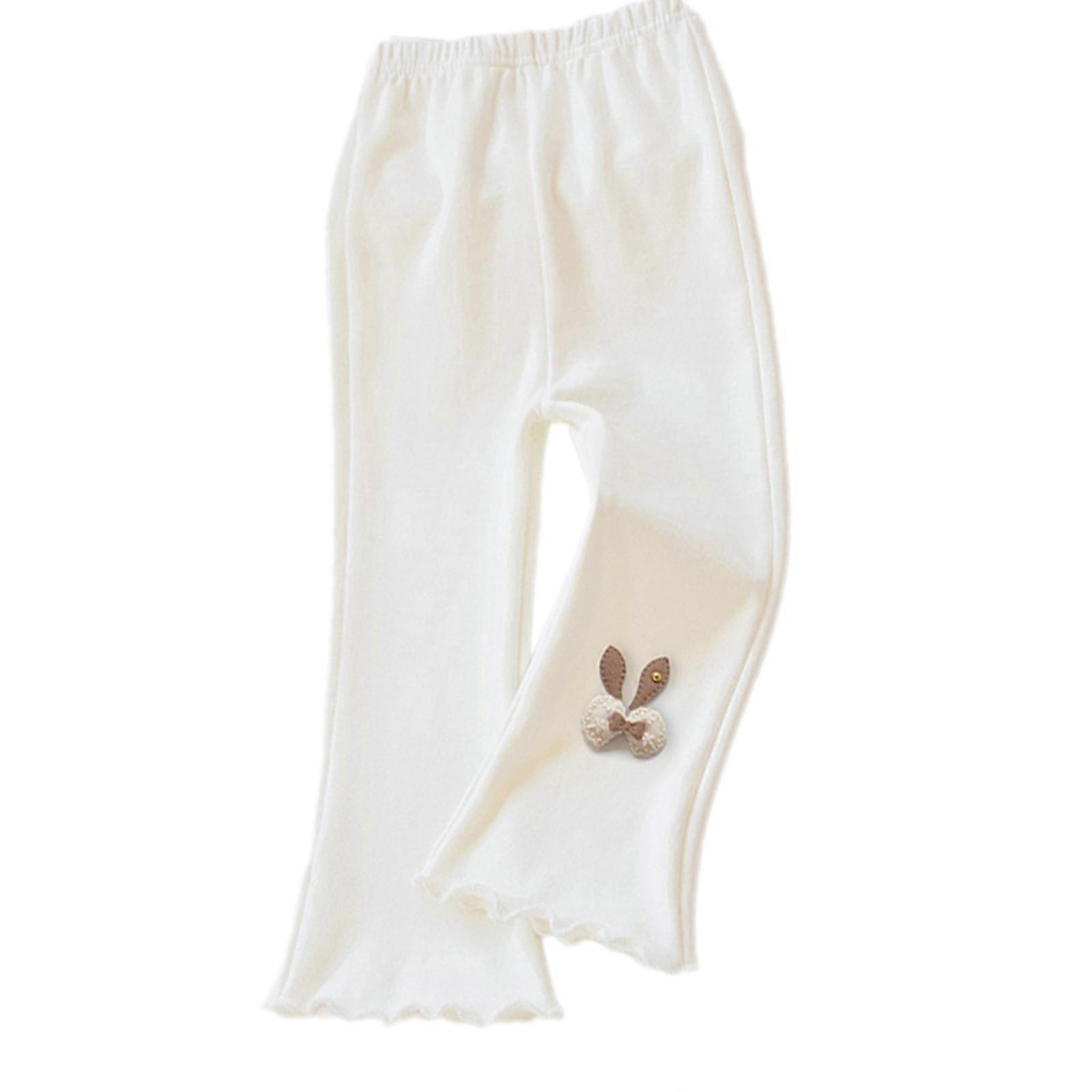 Kids Cotton Elastic Waist Pants Breathable Anti Wrinkle Design Long Trousers Spring Autumn Outdoor Clothing for Child White 90cm