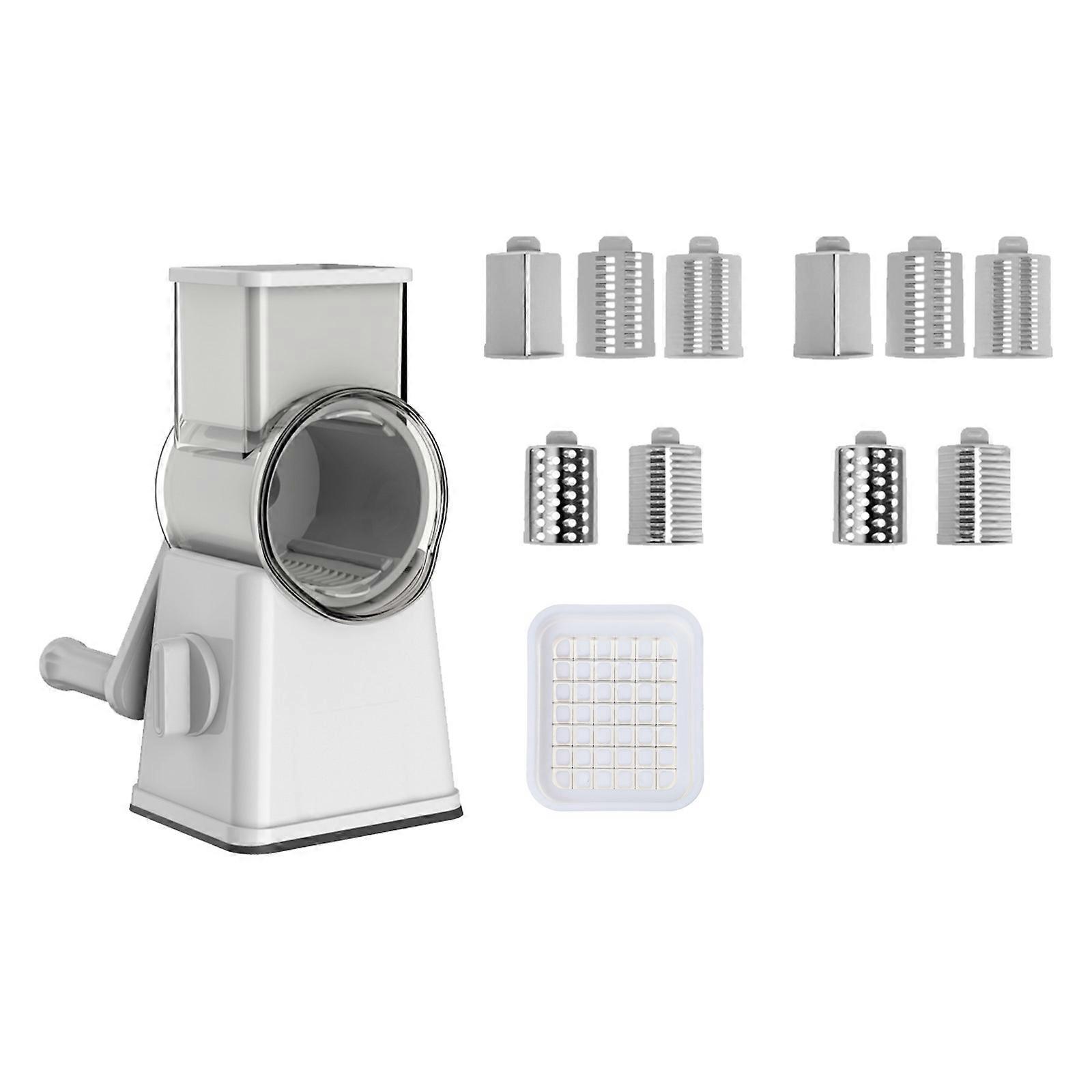 Rotary Food Grater Vegetable Slicers With Safety Guards And Interchangeable Blade For Professional Cutting Performances White
