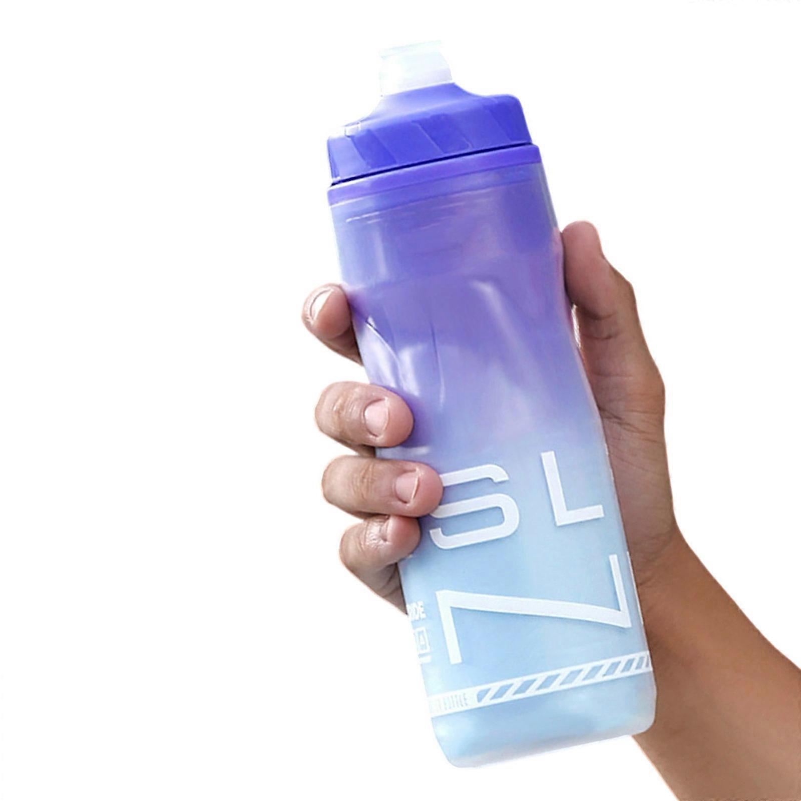 Cycling Water Bottles Ice Retention 360 degrees Drips Without Lid Wide Mouthes Easyly Clean with Bike Racks Blue and purple grad