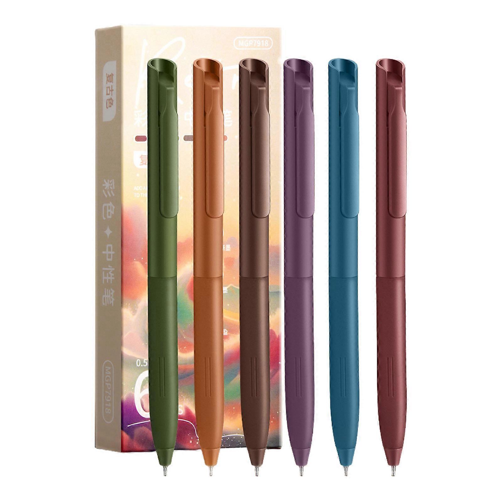 6 Pcs 0.5mm Gel Pen Set Journaling Pen Retractable Gel Ink Pen Back to School Supplies For Note Taking Organization Retro color