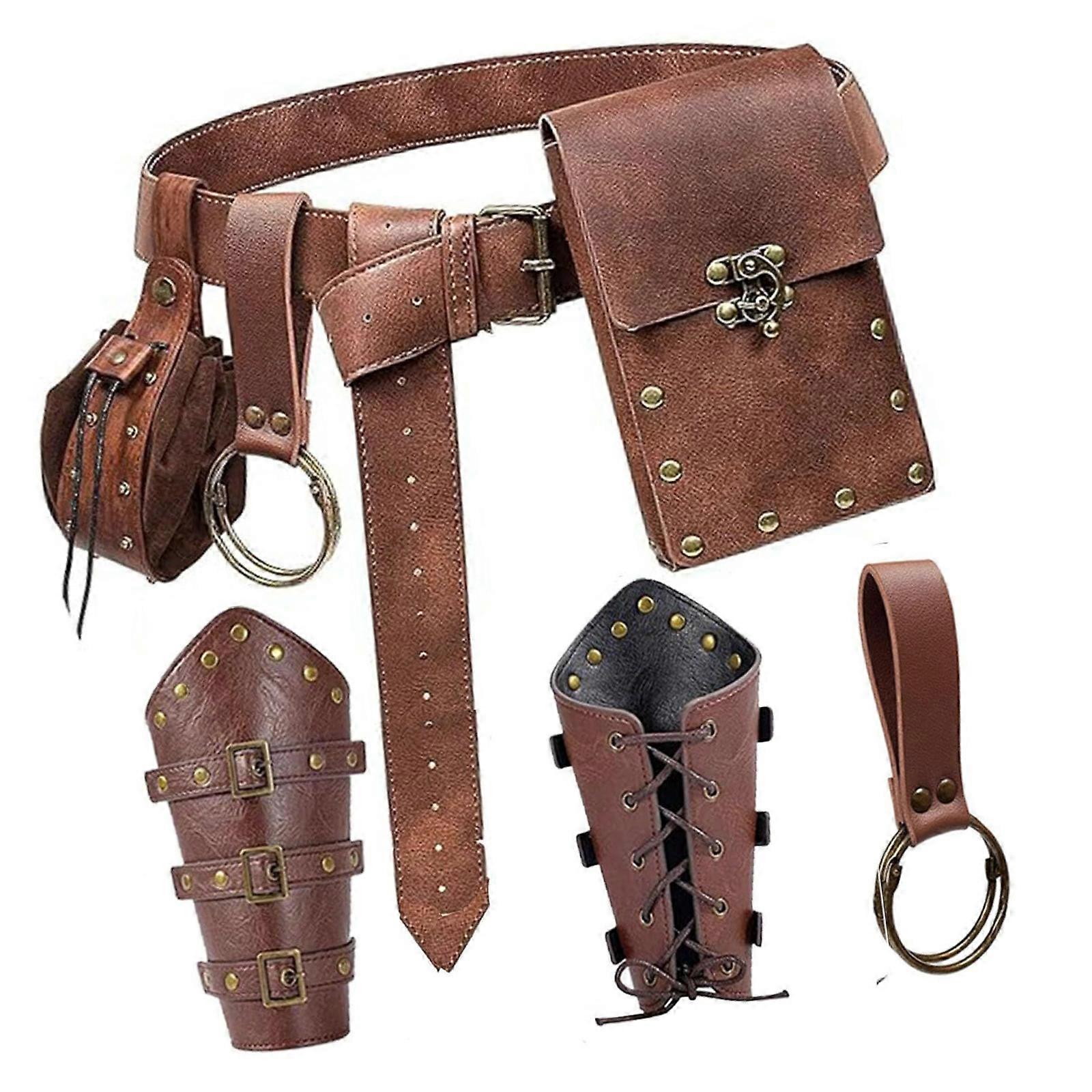 Features: Medieval steampunk styles phone bag belt set combines vintage aesthetic with modern functionality. Craft from practical pu leather construction for daily wear. Fine hand sewing to ensure the perfect presentation of detail, keys, and wallets, secured by reinforced stitching and quick release buckles for access during outdoor adventures. Ideal for cosplay enthusiasts, fair attendees, and explorers seeking stylish accessory to organize essential during event. Adjustable belt bag fit most waist sizes, blending practicality with theatrical charm for steampunk costumes or casual streetwear outfits. Used as a waist bag, convenient for daily carrying of mobile phones and small items. Suitable for outdoor activity, travel, gatherings and other occasion. Specifications: Component: pu leather Optional Color: As picture shown Size:approx. As picture shown Quantity: 1set(5pcs) Package Includes: 1set(5pcs) Medieval Belt Costume Accessories note: Please allow 1-3cm error due to manual measurement. please sure you not mind before you bid. Due to difference between different monitors, the picture may not reflect the actual color.