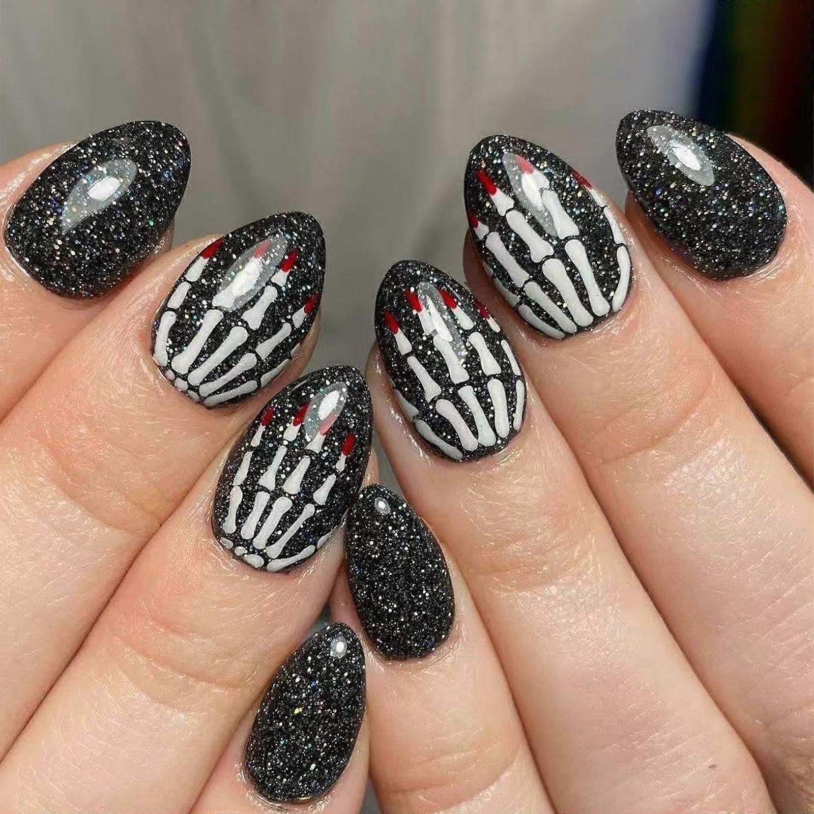 Black Eerie Framework Persist Hoofs Halloween False Hoofs Short Ellipsoidal ABS Unguis Art Recyclable Not Toxic For Party Everyday Use Multicolor