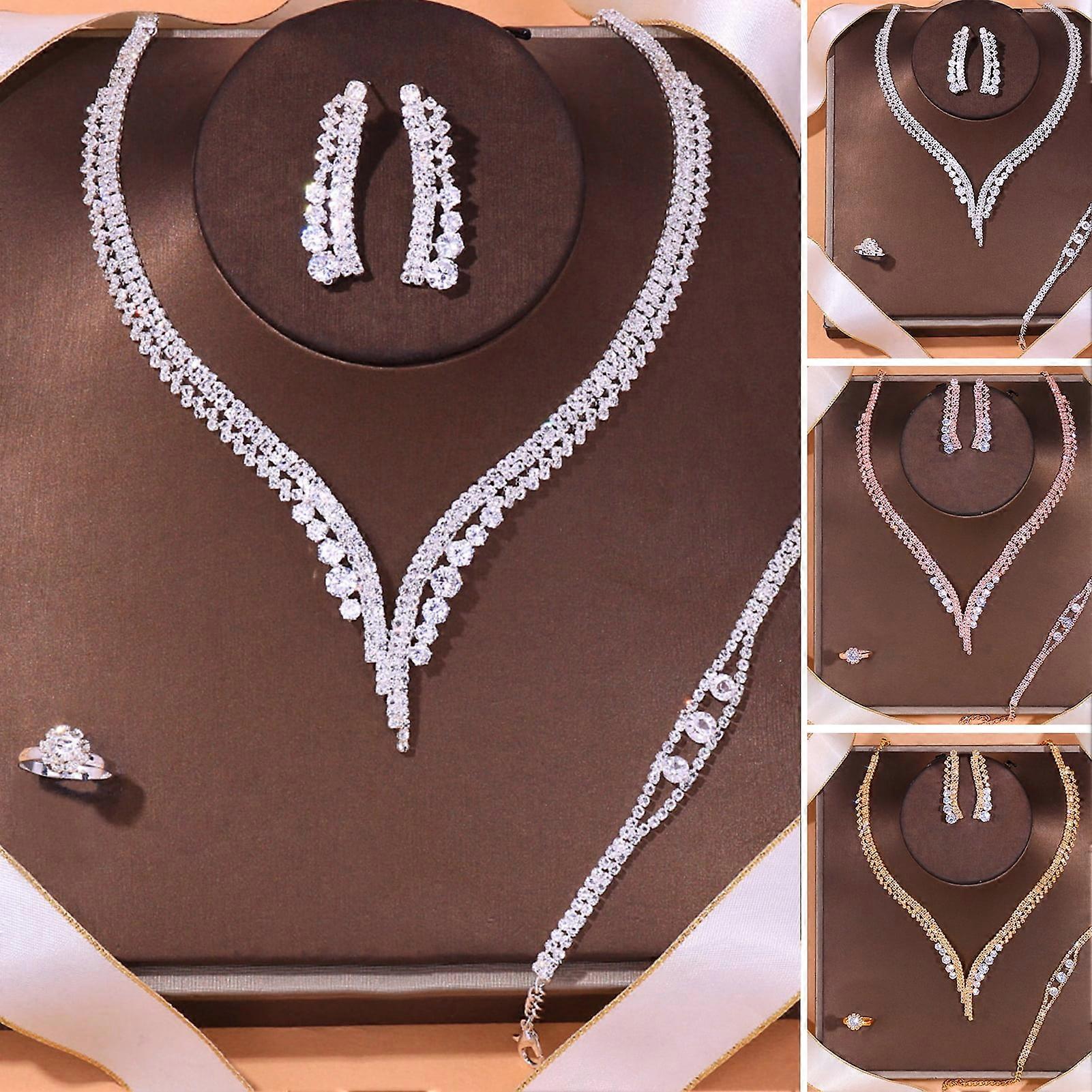 Xinyolin Women Jewelry Set: Luxury Rhinestone Necklace, Bracelet, Earrings & Ring Set - Elegant Bridal Gift, Wedding Supplies