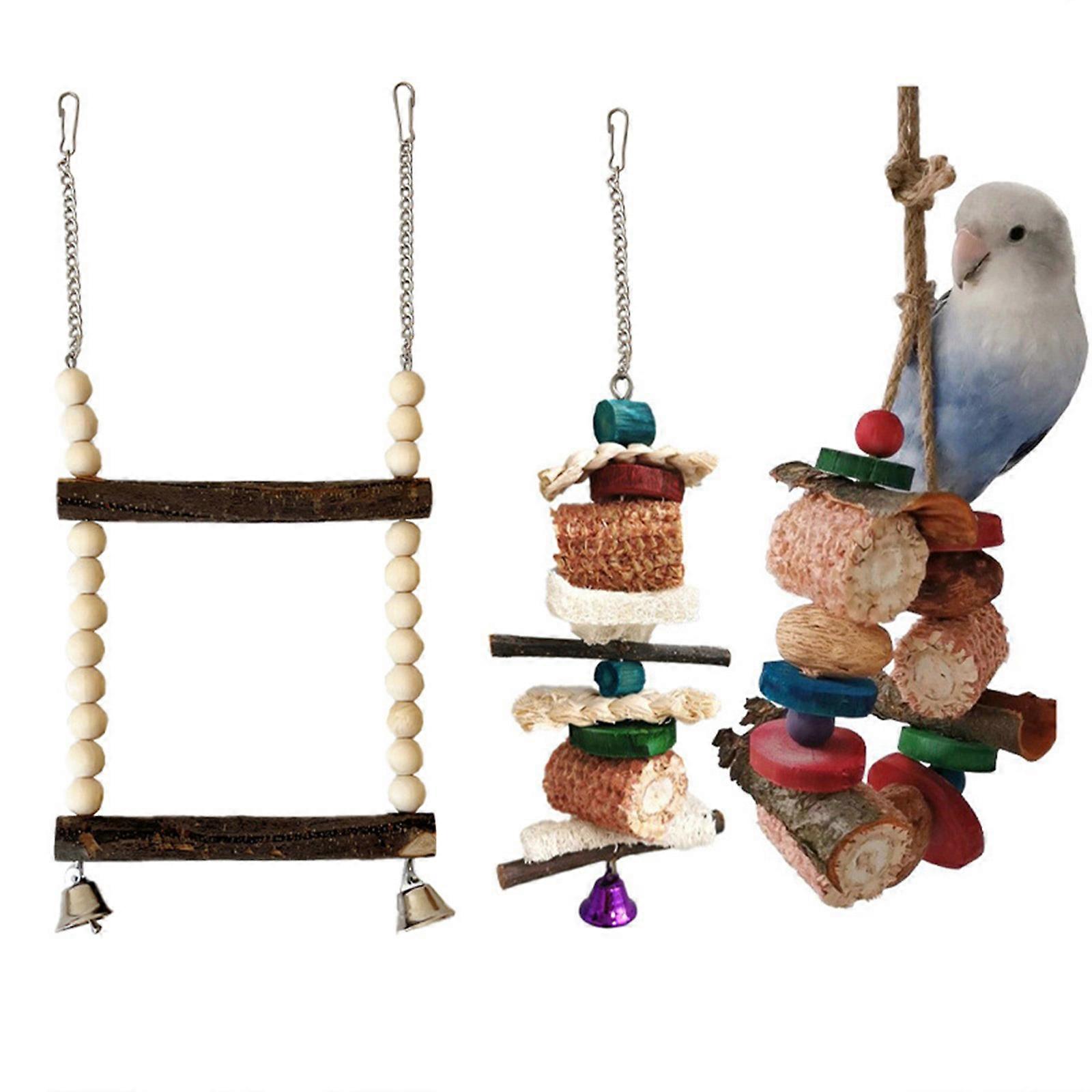 3pieces Bird Molar Toy for Parrots Natural Wood Birds Molar Reliable Chewable Wood Colorful Parrot Toy Bird Boring Toy Multicolor