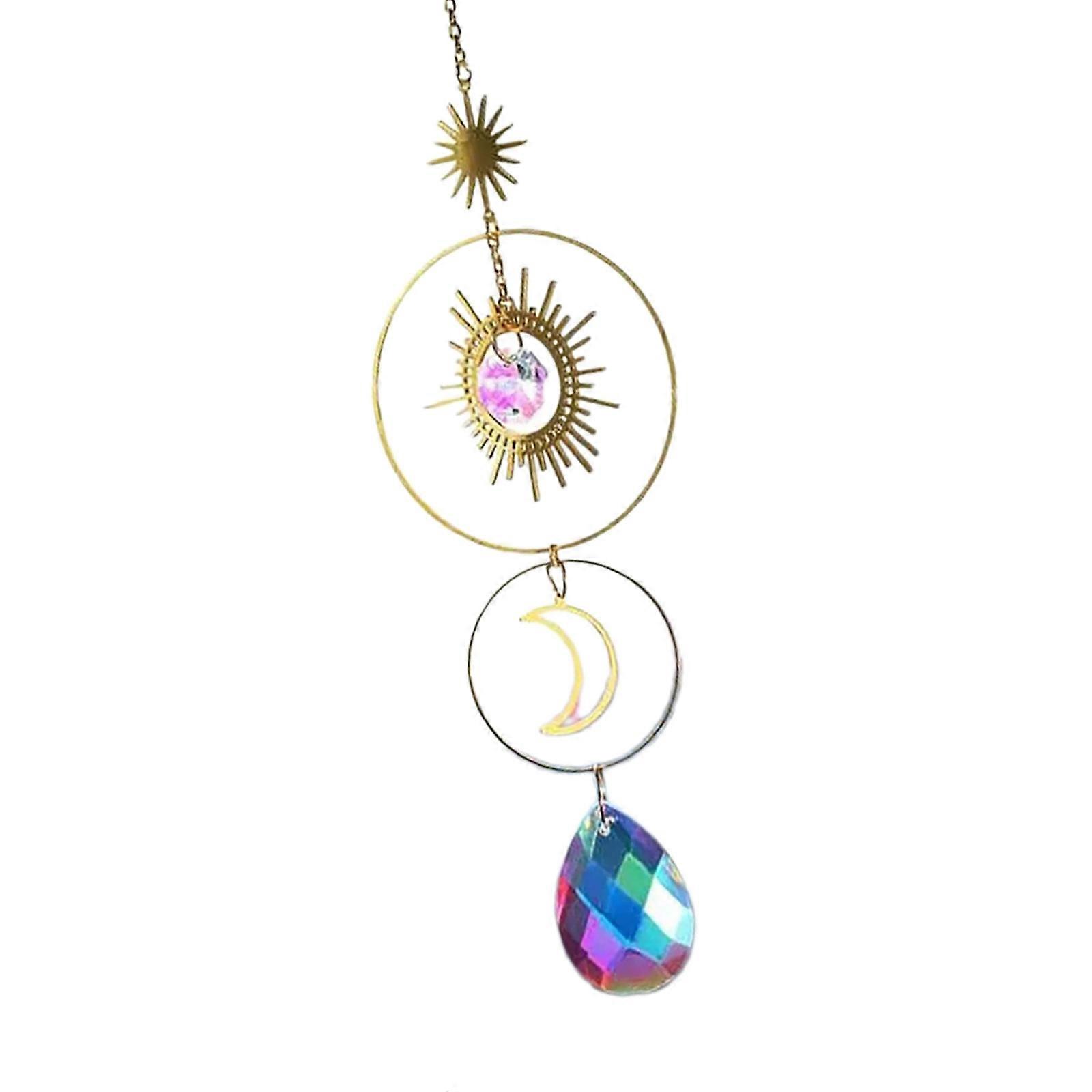 Elegant Star Moon Crystal Window Hanging Decoration Scandinavian Design Light Refracting Outdoor Indoor Party Decoration Multicolor