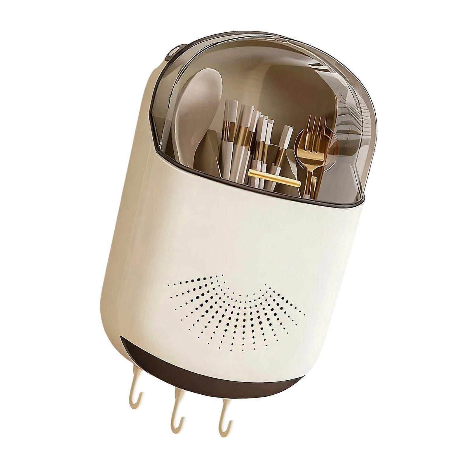 Wall Mount Cutlery Drying Rack Space Saving Tableware Holder with Hanging Hooks Wall Mounted Kitchen Utensil Organiser White