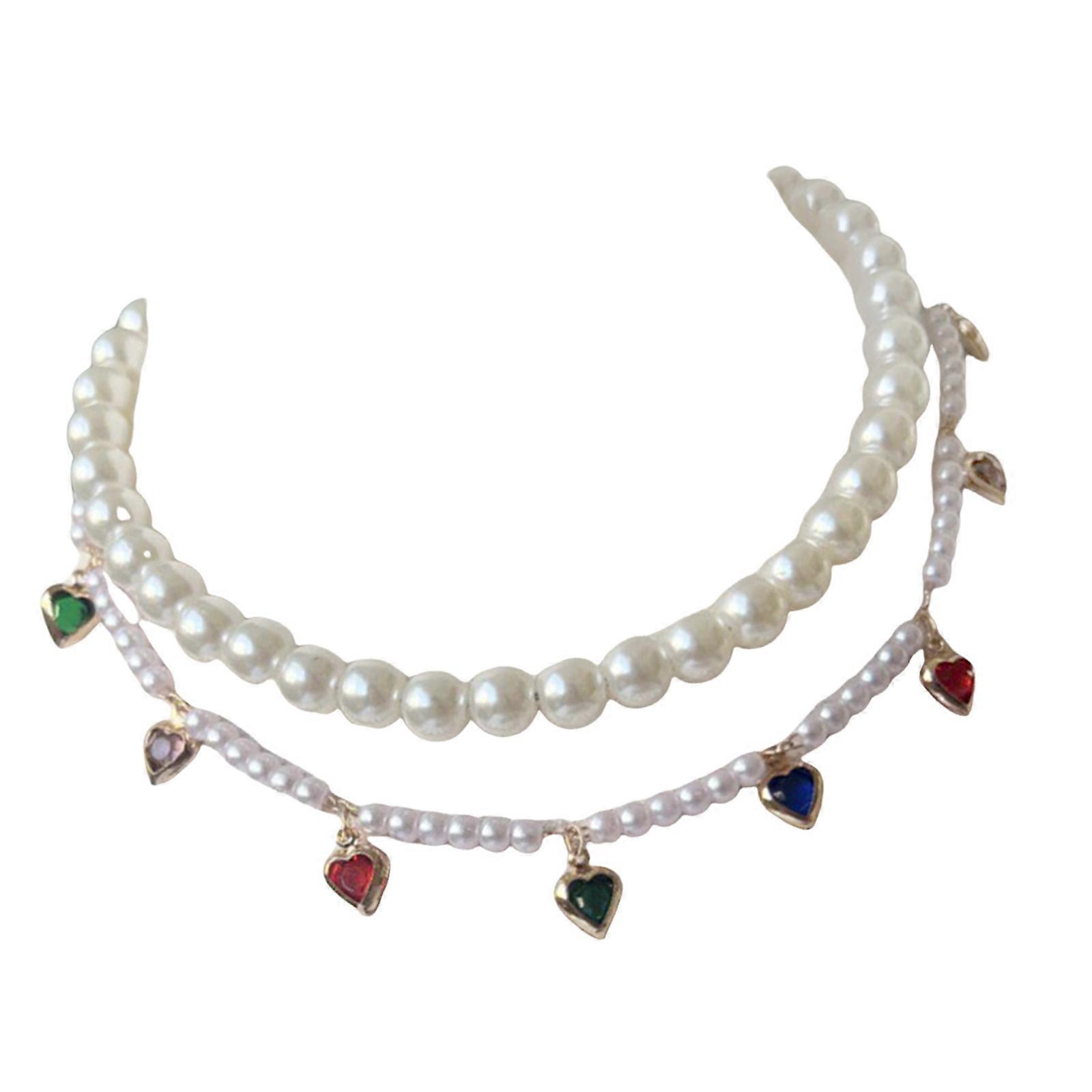 Small Dog Cats Pearls Collars Necklace Rhinestones Pet Collars Necklace for Dog Cats Puppy Kitten Party Wedding Birthday XS Multi-Colored