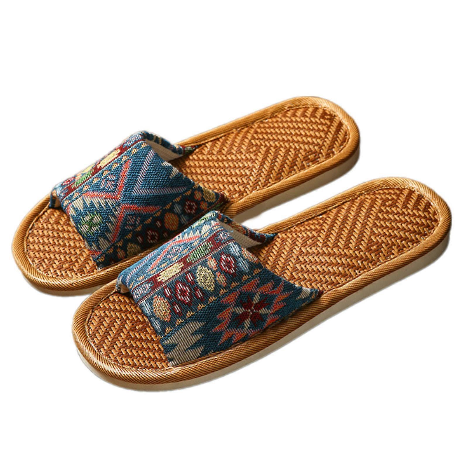 Women's Family Safe Indoor Slippers Abrasion Resistant Soles Quick Dry Woven Rattan Indoor Sandals for Hot Weather Use Blue E.