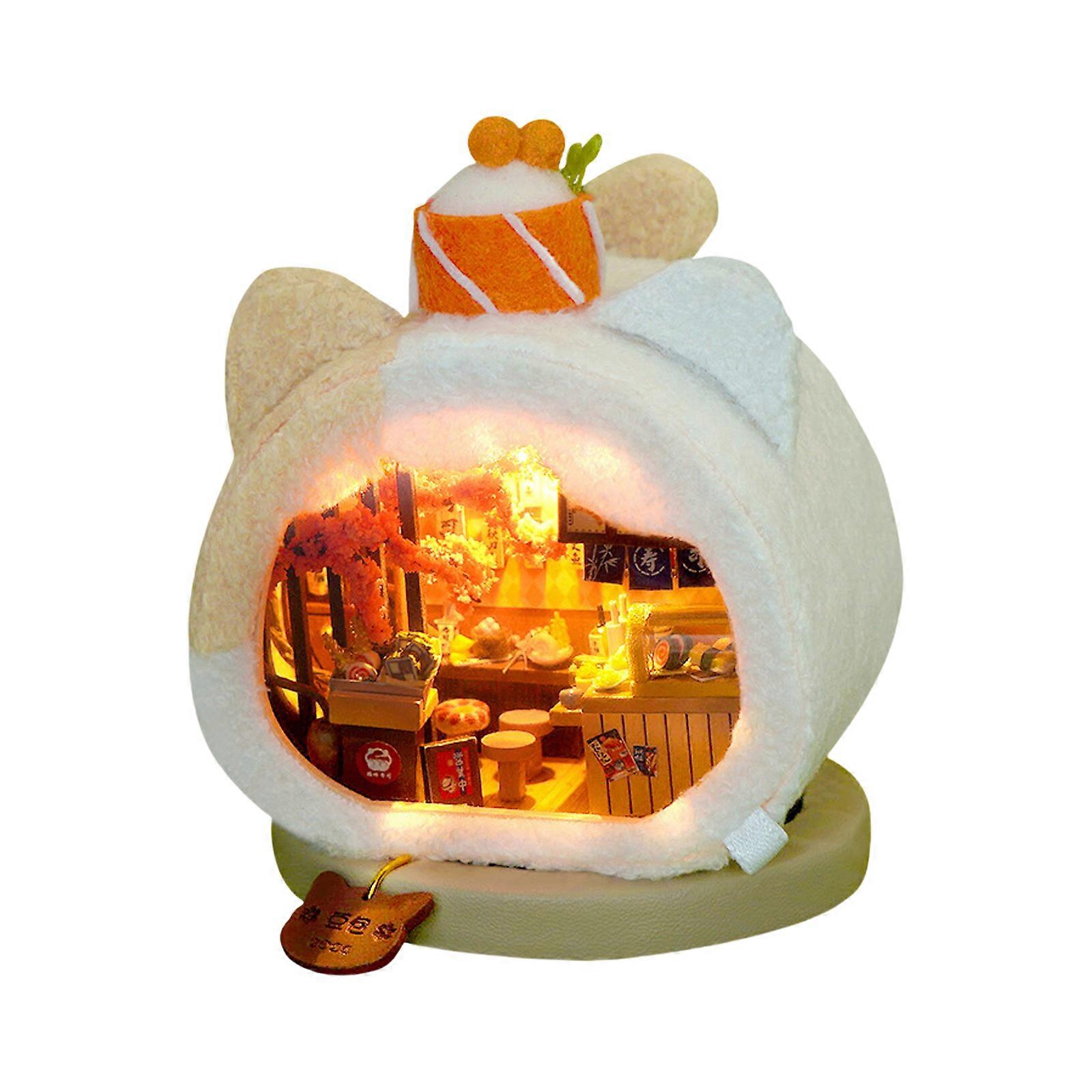 Do It Yourself Sushi Restaurant Dollhouses, LED Light Up Sushi Shop, Fun Crafting Model 3D Shop Model Gift Multicolor