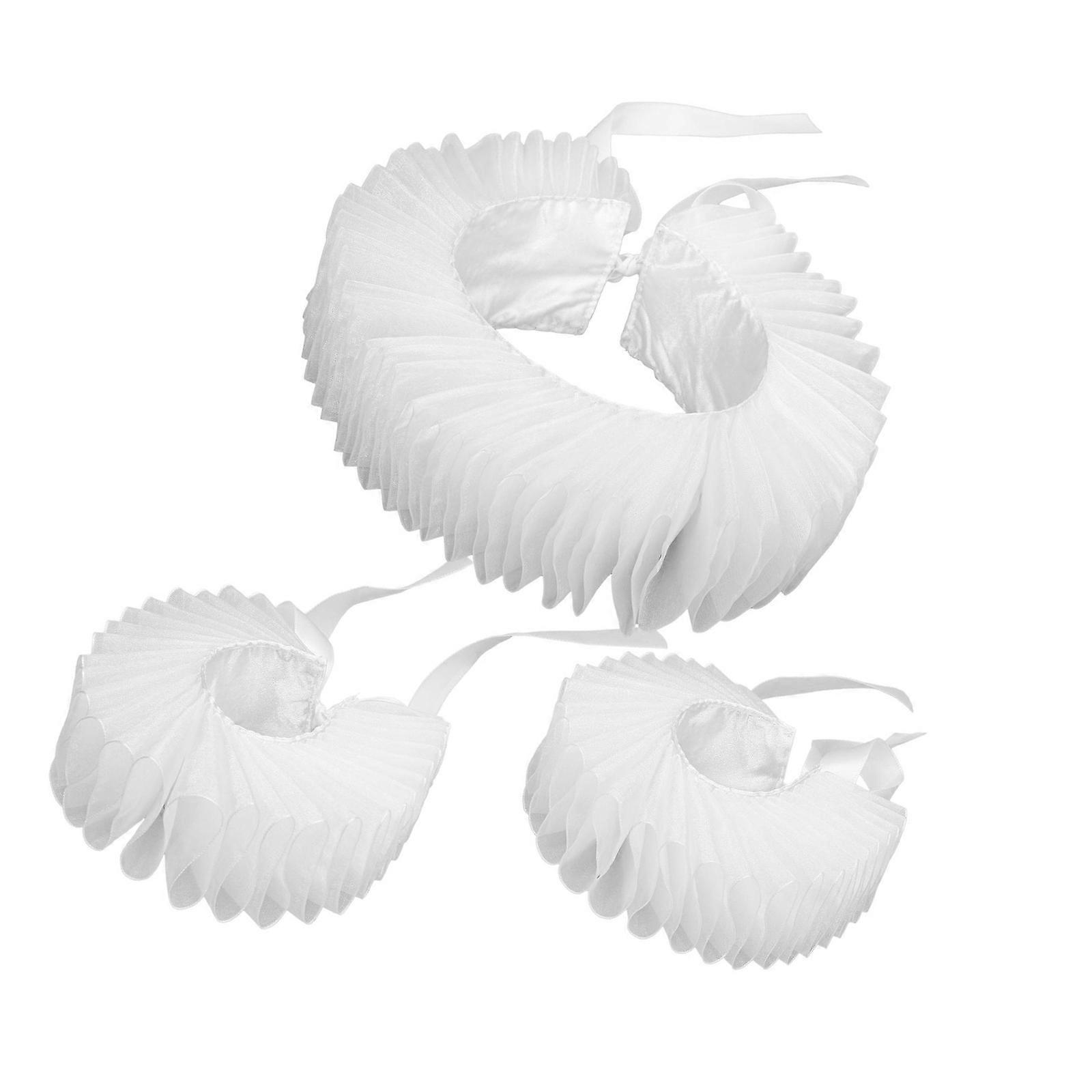 Ruffled Collar Wristband Girls Cosplay Tie Victorian Collar Lapel Medieval Cosplay Victorian Ruffled Tie Collar White