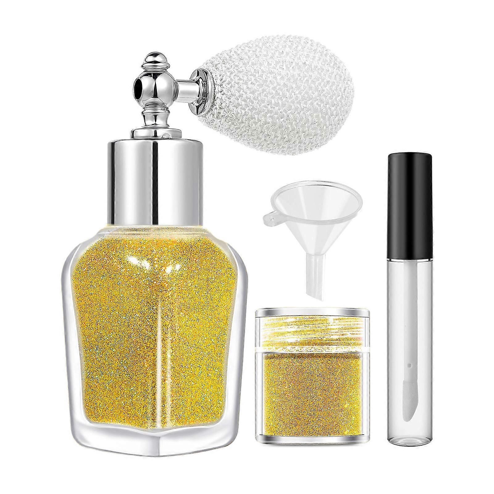 Highlighter Powder Sprays,Shimmers Glitters Powder Sprays for Body,Face,Hair,Highs Gloss Loose Powder Makeup Mist Raves laser gold