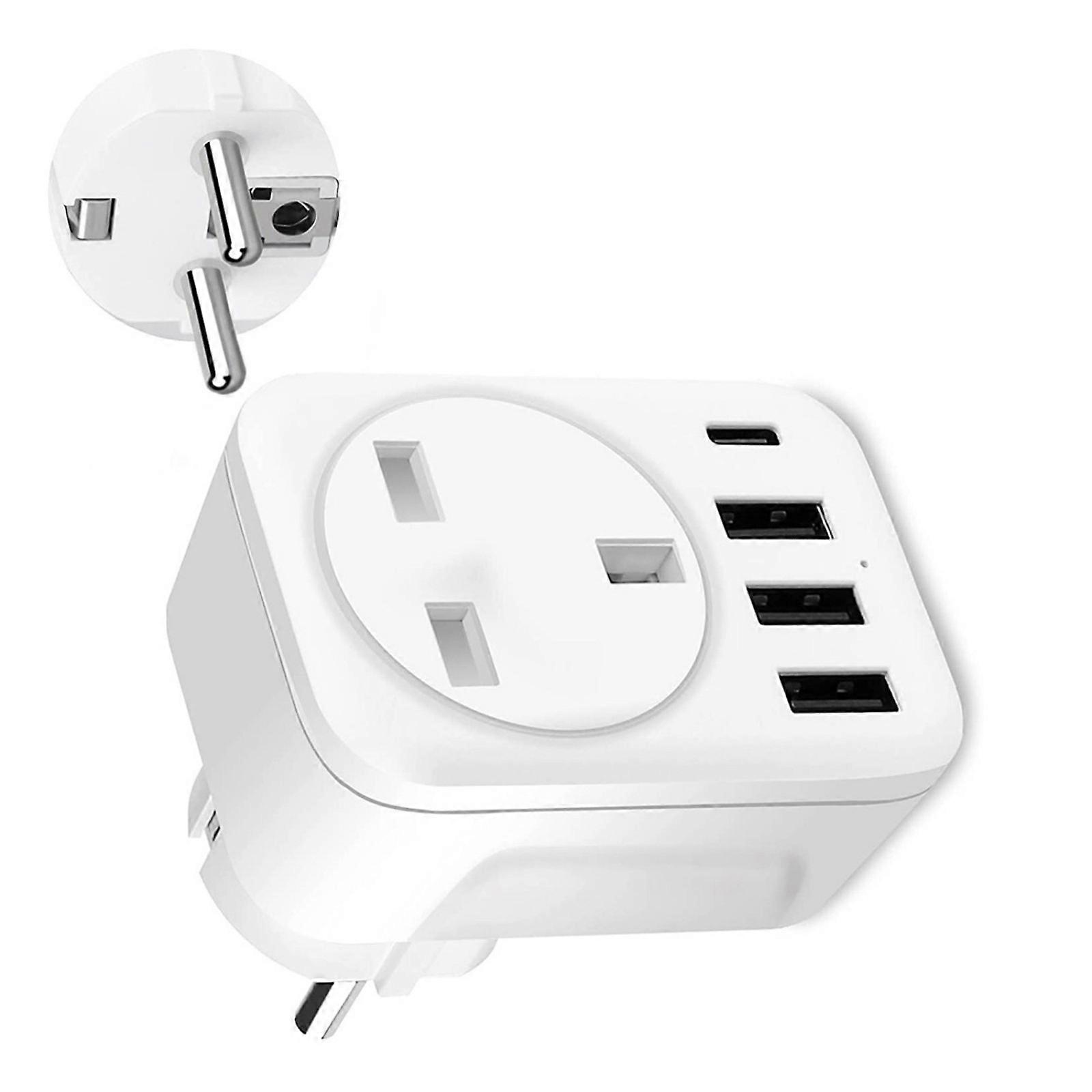 Features: Universal UK to German plugs Adapter with 240 v-110V voltages converters & 4 USB Port (3xUSB A, 1xUSB C) ensures safe device charging across Europe and beyond. builts with high quality PC and flame retardant materials, this compactly adapter prevents short circuits and overheating for reliable long terms use. Ideal for international traveler, business professionals, and tourists needing multidevice charging with QC3.0 fast charging capability. Effortlessly power laptops, phones, and tablets in German hotel, airports, or offices requiring voltages conversion and simultaneous USB C/ USB A charging. Combines certifieds electrical safety standards with space saving design (specific dimension) for stressfree compatibility with EU socket and travel essential. Specifications: Component:PC Size:Approx.76x50x40mm/2.99x1.96x1.57inch Applicable voltages ranges: 110-240 v Current: 10A Maximums power: 2200W plugs conversion]: British to German plugs Package Includes: 1pc plugs Adapter note: Please allow 1-2cm errors due to manual measurement. Due to the differences between different monitors, the picture may not reflect the actual item color.