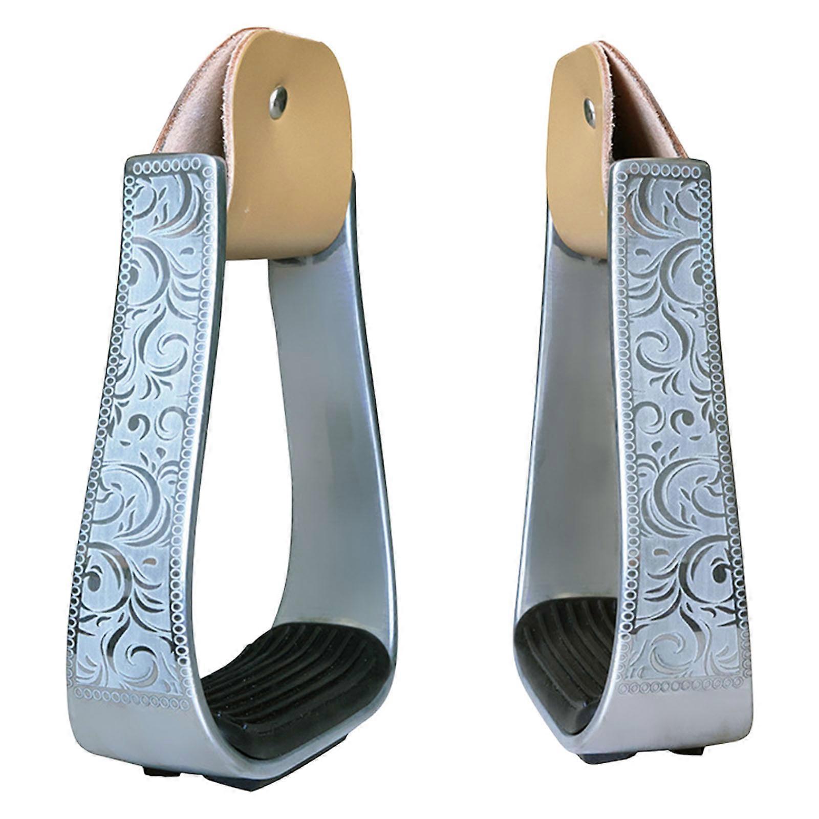 Nonslip Horse Riding Stirrups Light Weight Aluminum Cushioned Western Stirrups with Rubber Antislip Foot Mat Enduring Multicolor