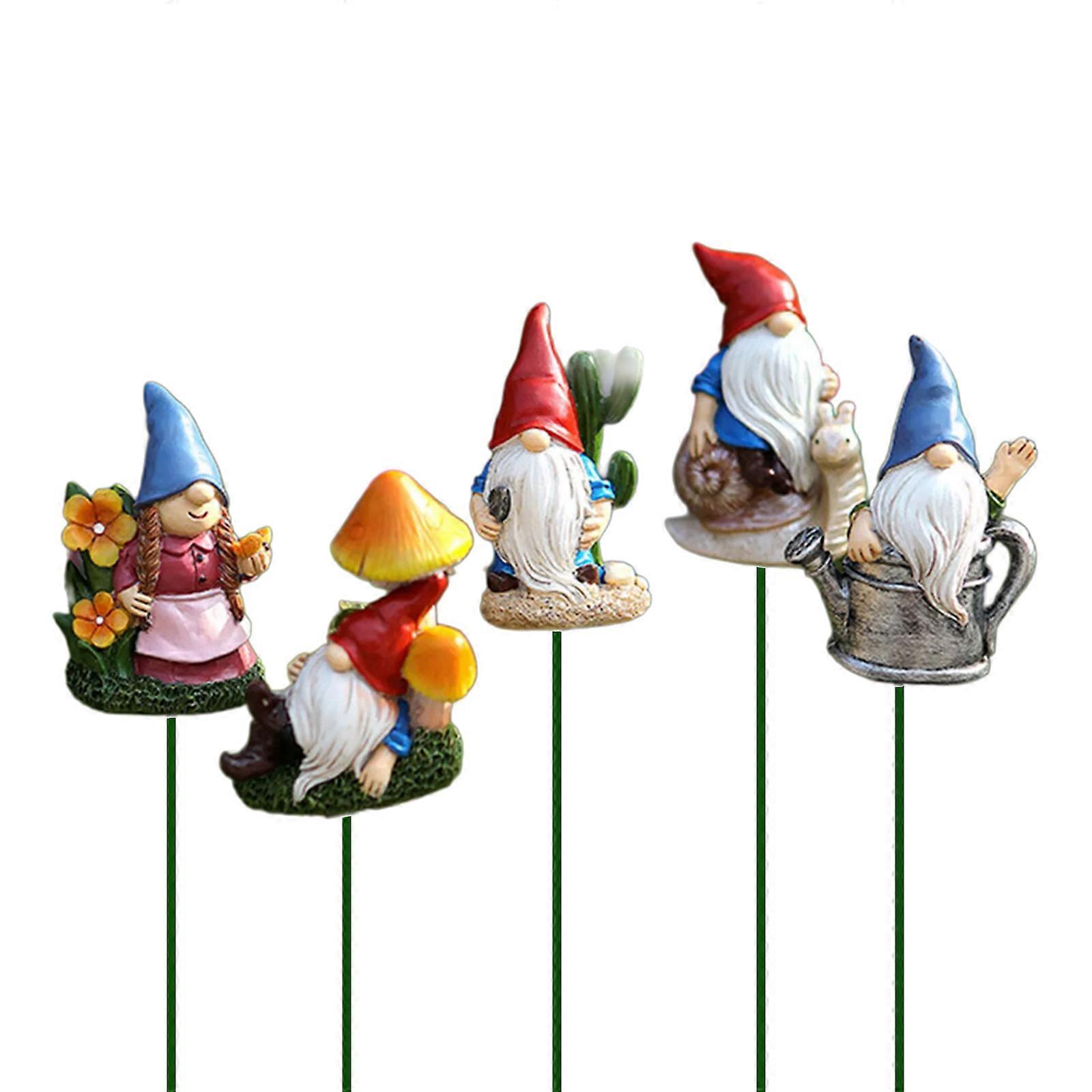5Pieces Garden Elf Flower Pots Stakes Outdoor Resins Gnomes Dwarf Miniatures Figurines Flower Bed Landscape Decoration Multicolor