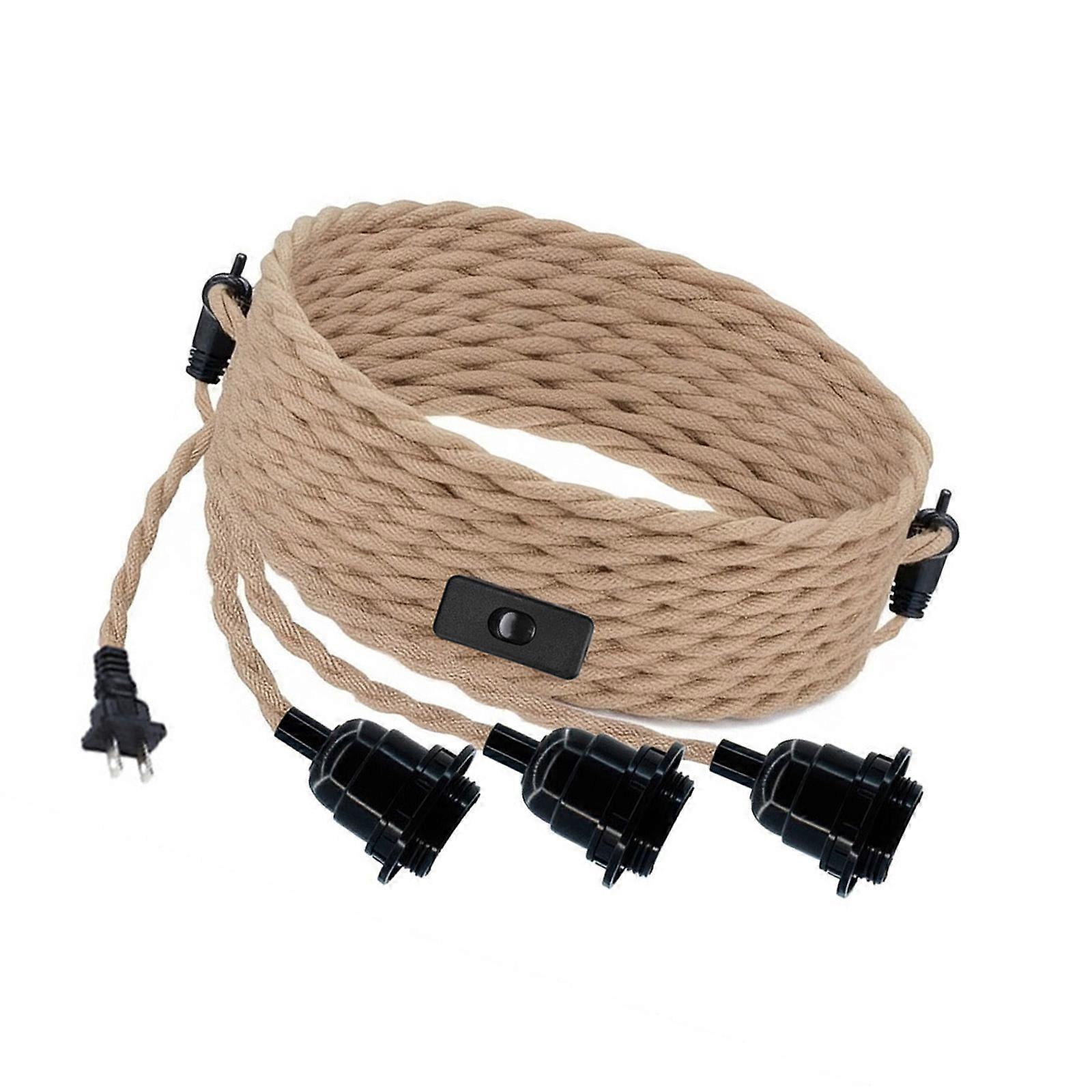 Features: This vintage pendant light in antique styles is perfect for traditional and industrial houses and gives any area a fashionable look. Great for use in kitchens, dining rooms, cafes and restaurants and is perfect for your lighting project. External twine rope, internal copper wire, the cable is very well covered by the fabric. The extension cable is used with a switches, which allows you to easily control the light and does not need to buy an additional switches. Three lighting fixtures can be connecting simultaneously, allowing you to arrange your space more flexibly. Supports E27 standard lamp heads for easy installation of various lighting fixtures. Specifications: Component: twine Rope Line length: about 6.8m/267.7inch Lamp Socket: E27 voltages: 110V-220V current: 1A Heat resistance temperature: 110℃ Package Includes: 1pc/2pcs Pendant Lights Cord note: Please allow 1-2cm errors due to manual measurement, make sure that you do not mind before you order. Due to the difference between different monitors, the picture may not reflect the actual color of the item.