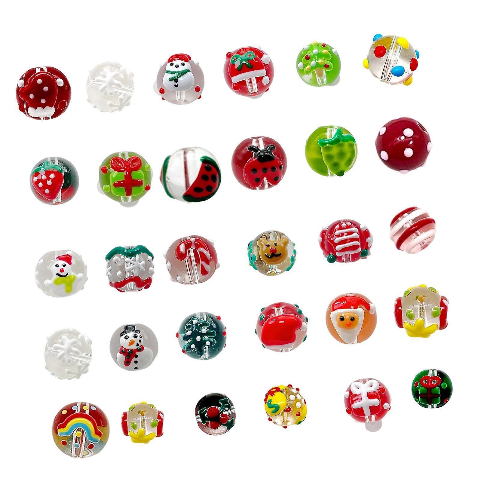 Christmas Themed Beads For Christmas Tree Ornament Hand Painted Glass Beads For Craft Bracelets Jewelry Crafting 30