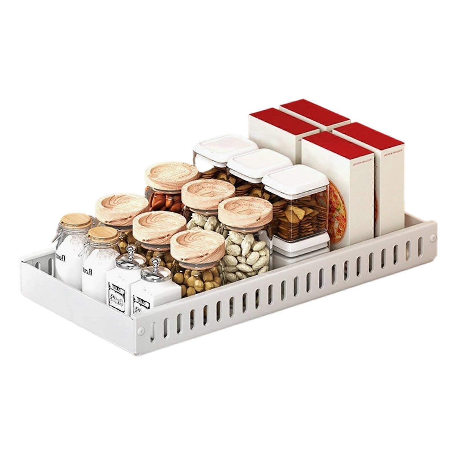Adjustable Kitchen Cabinet Storage Rack With Slide Out Shelves For Cookware Dishes Spices Metal Construction Tray White