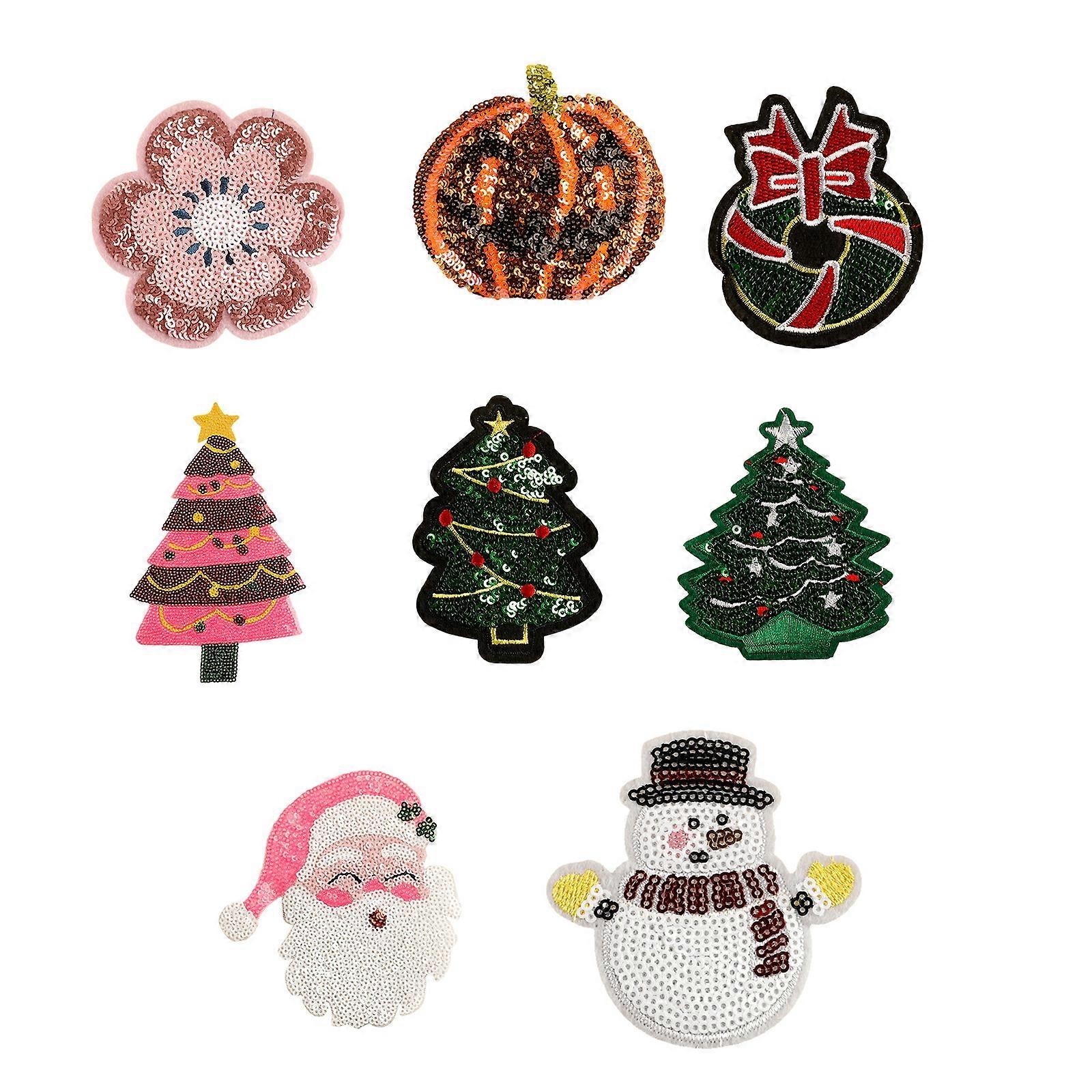 8Pcs Christmas Sequins Embroidered Iron On Patches Adhesive Embroidery Appliques For Clothing Jackets Bags Hat Sewing Multicolor