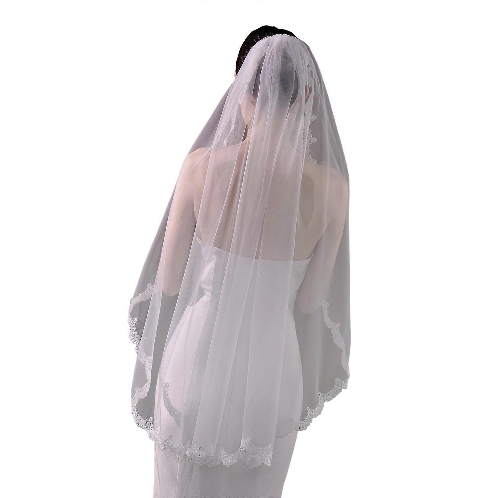 Classical White Lace Trim Wedding Veils Seethrough Sheer Headpiece Bride Veils With Hair Comb for Ceremony Celebration Original white