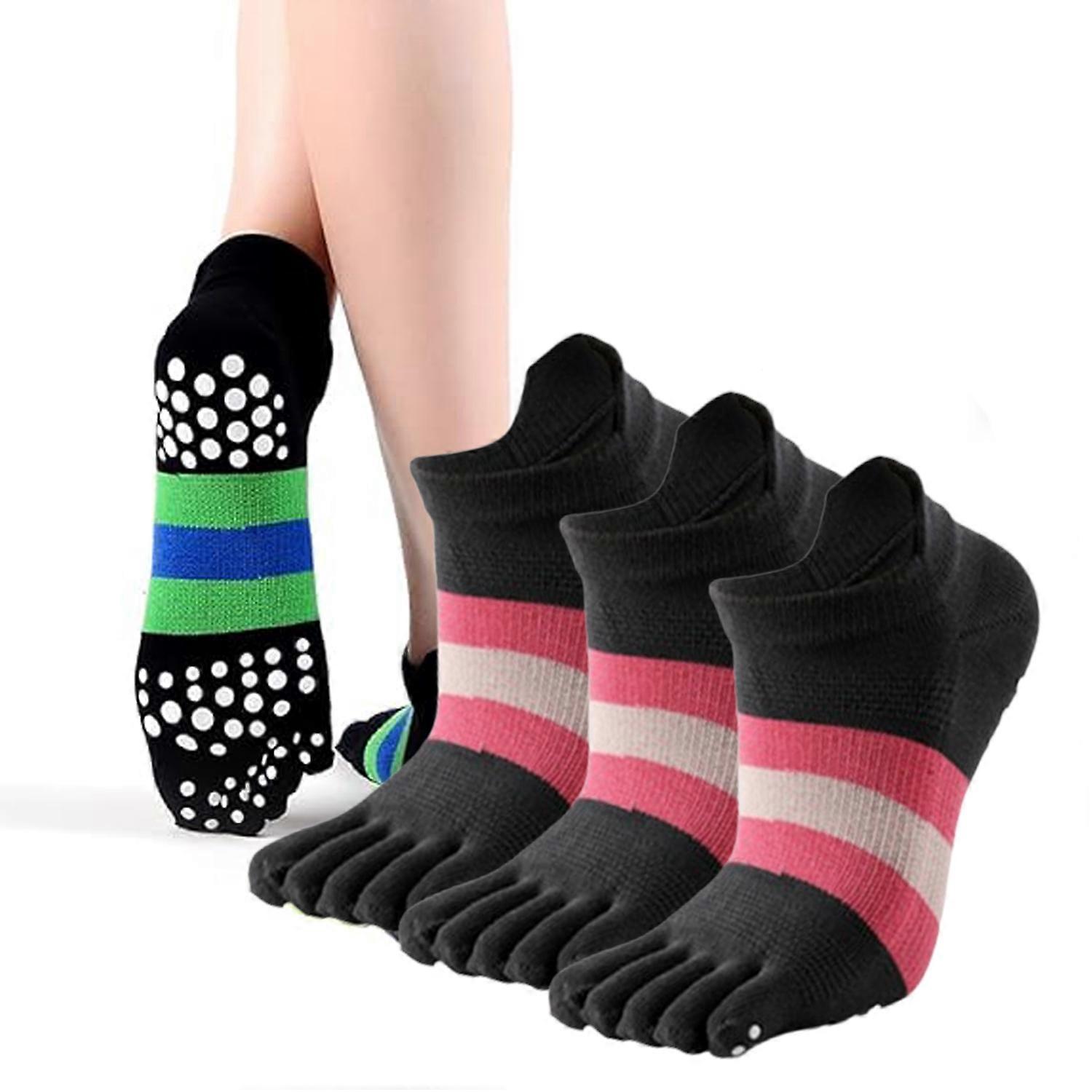 3 Pairs Women Cotton Ankle Socks Non-slip Yoga Toe Socks Ankle Five Finger Socks Non-slip Yoga Socks,Gray
